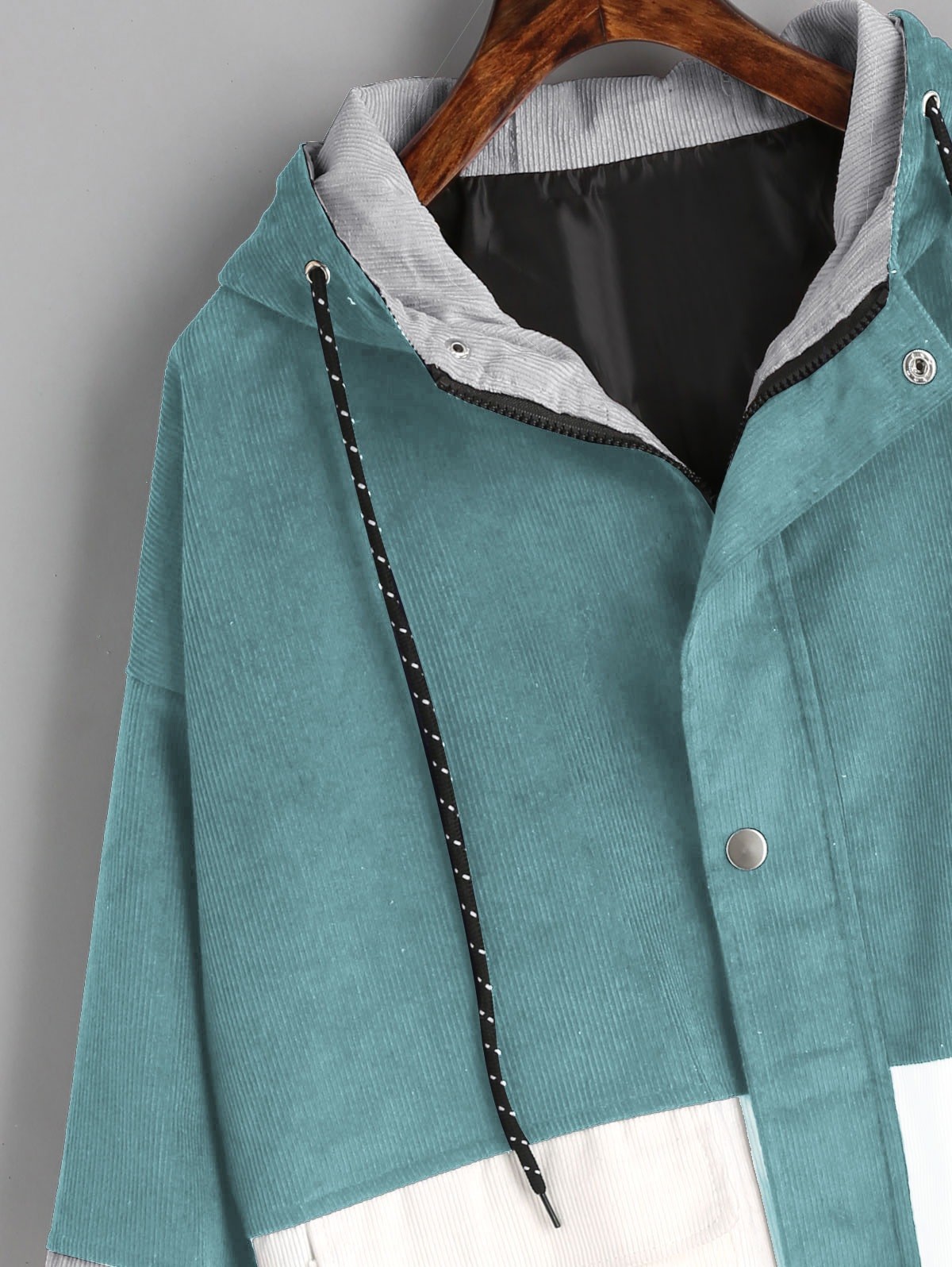 Então temos este maravilhoso casaco de veludo cotelê, que lhe ficará muito bem durante o passeio.