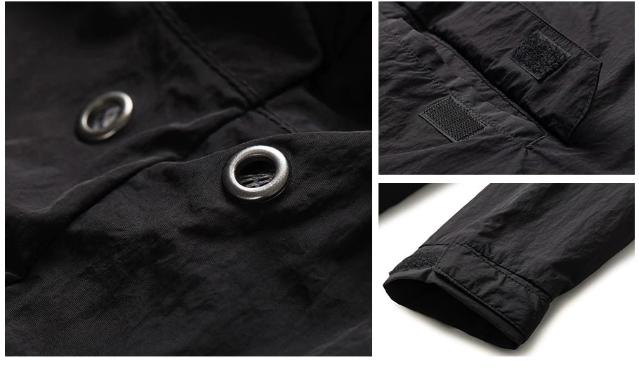 Com este casaco de vento na cor preta nunca vai ficar molhado.