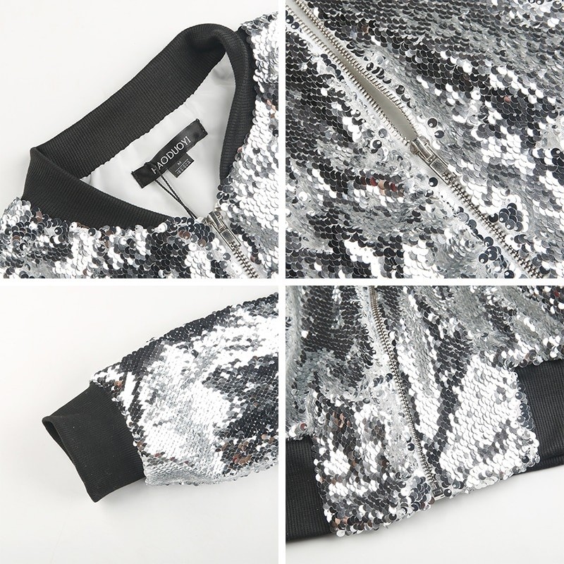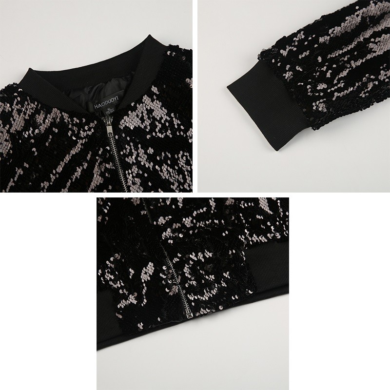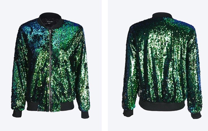 Este casaco estiloso com lantejoulas é adequado para todas as mulheres ou raparigas que gostam de roupas extravagantes.