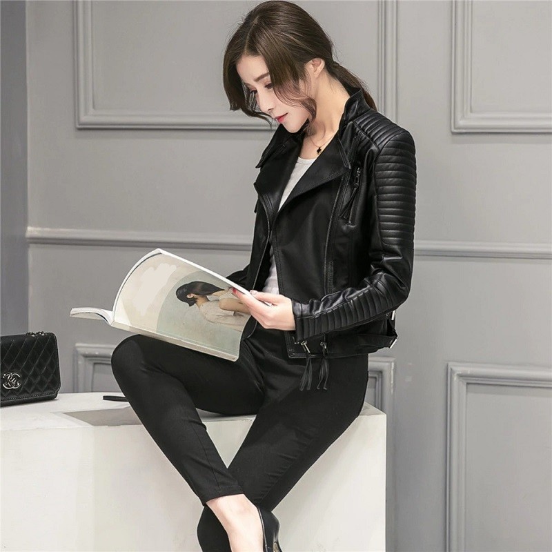 Casaco feminino de pele sintética
