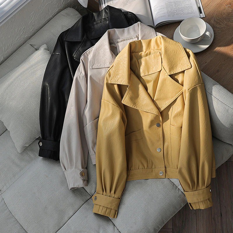 Casaco feminino em pele sintética
