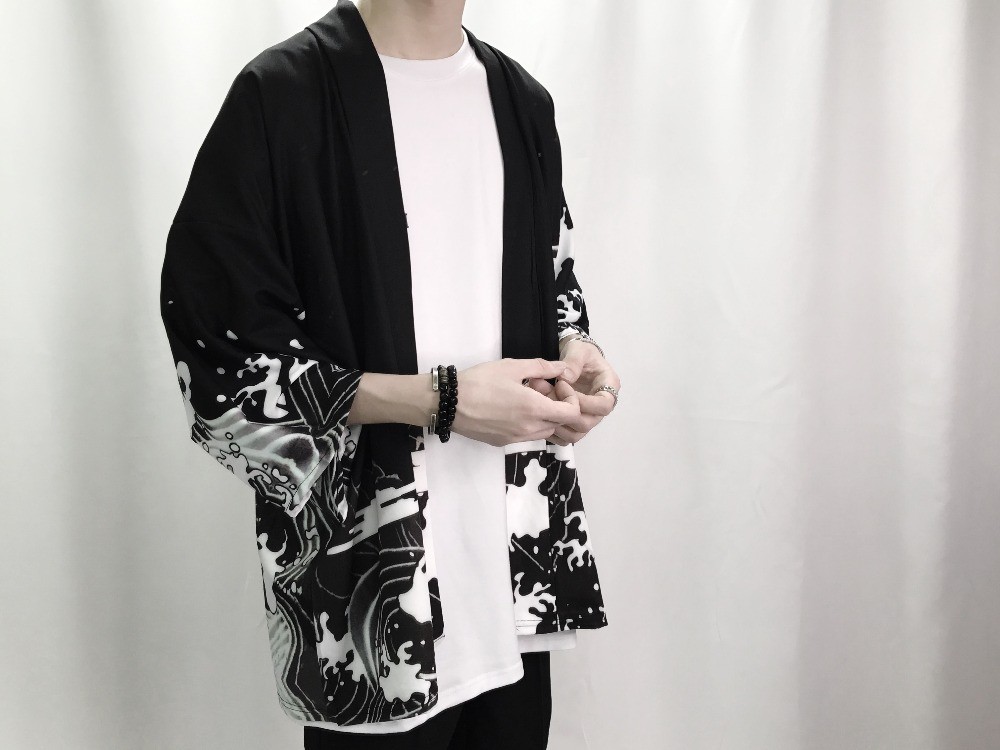 Este casaco leve (kimono) é uma verdadeira peça japonesa.