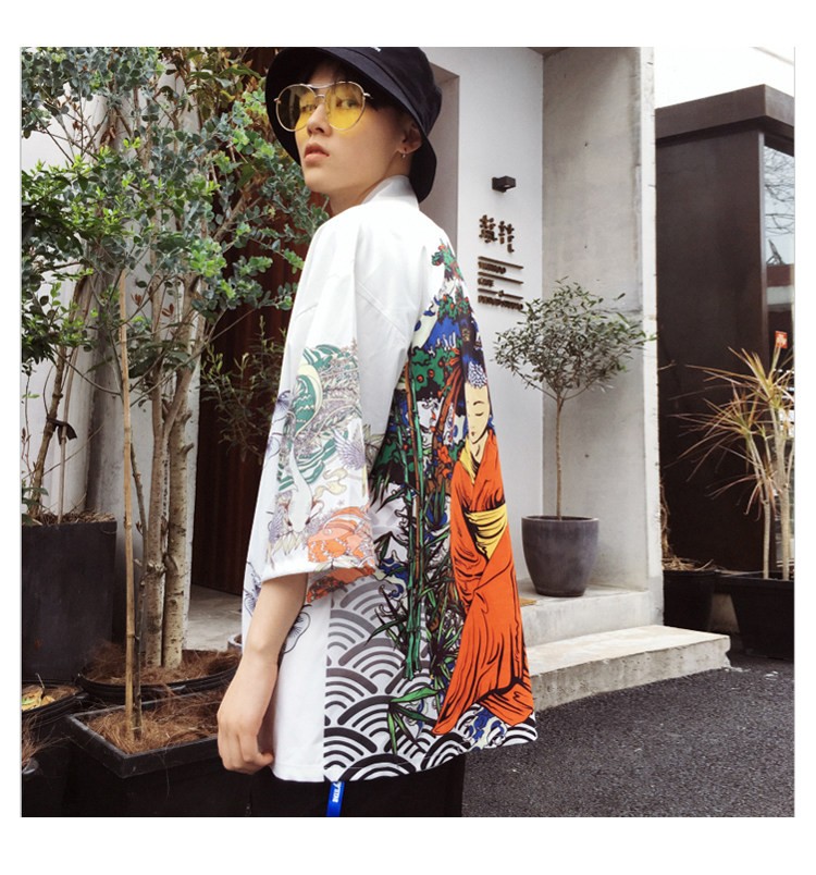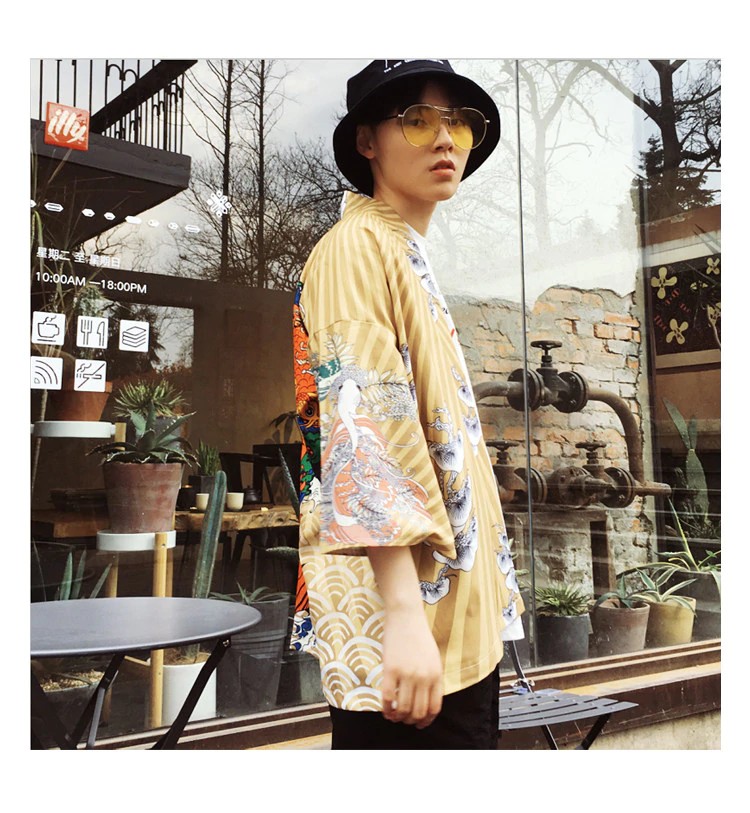 Casaco masculino de estilo japonês com estampado J2041
