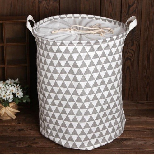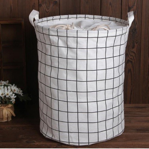 Cesto para armazenamento de roupa suja com design moderno.