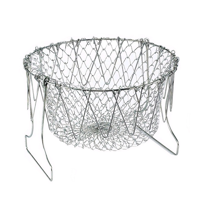 Cesto de rede dobrável para cozinhar massa ou legumes é um excelente auxiliar na cozinha.