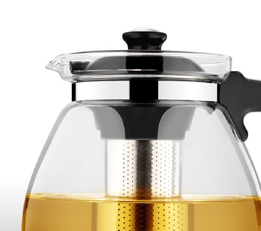 Chaleira com filtro em aço inoxidável.