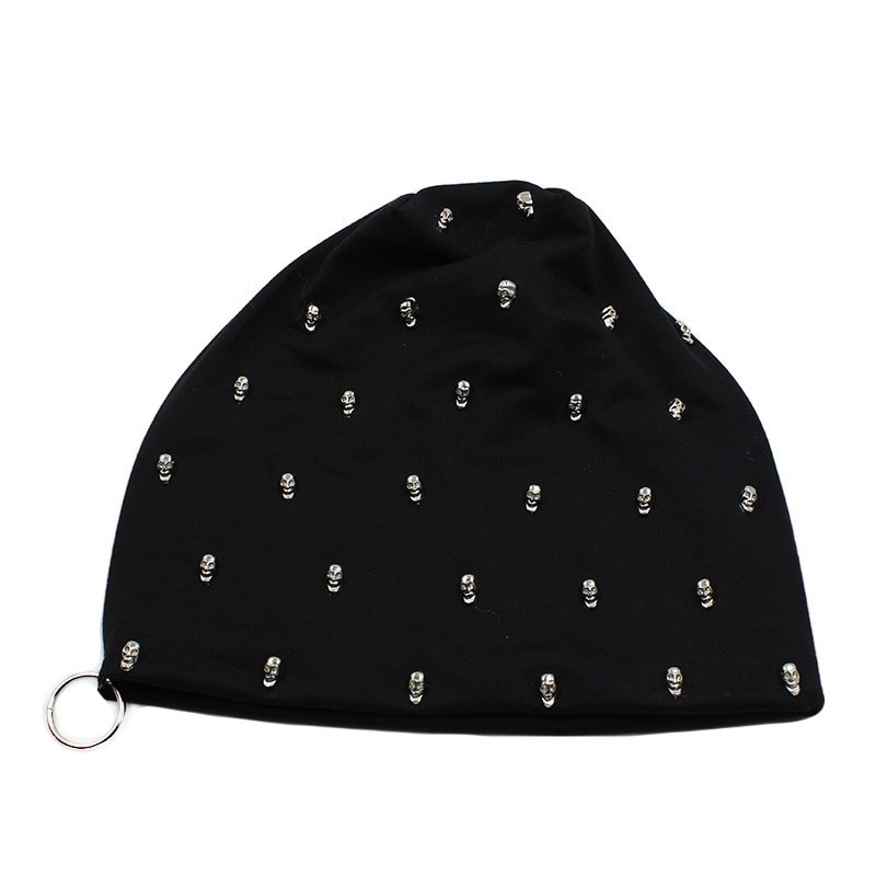 Chapéu clássico com adornos metálicos em forma de caveiras.