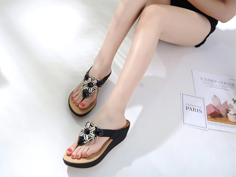 Esteja preparada para as férias à beira-mar com estes incríveis chinelos, que são adornados com pedras.