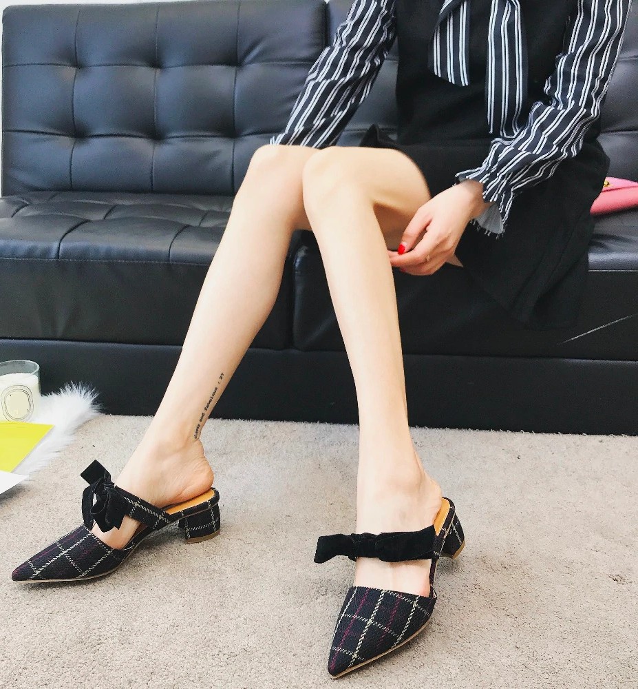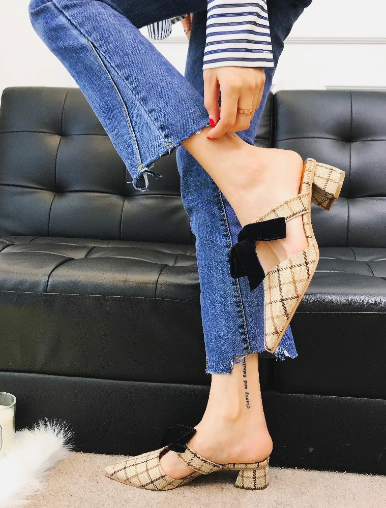 Chinelos de senhora xadrez