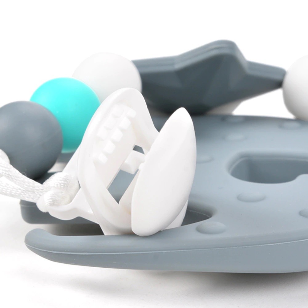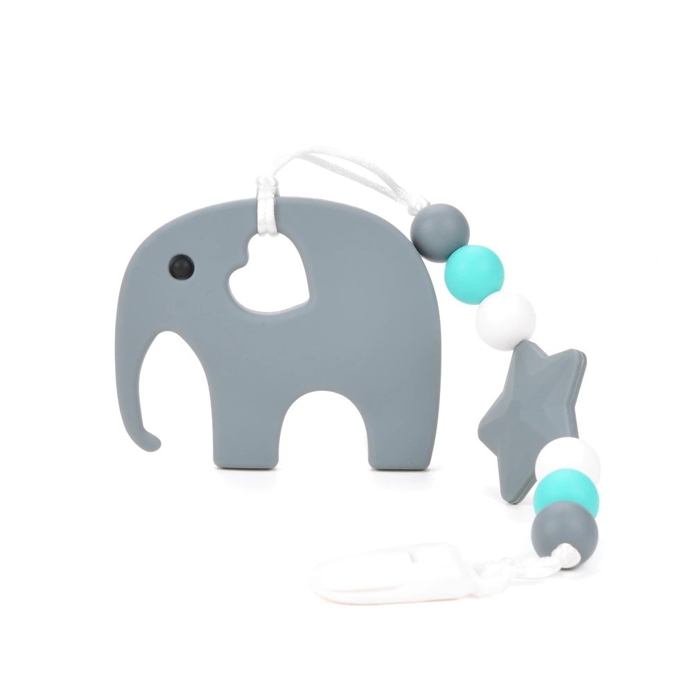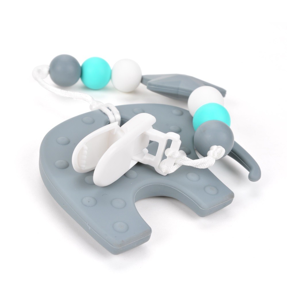 Chupeta de silicone em forma de elefante com corrente é apreciada por todas as crianças pequenas.