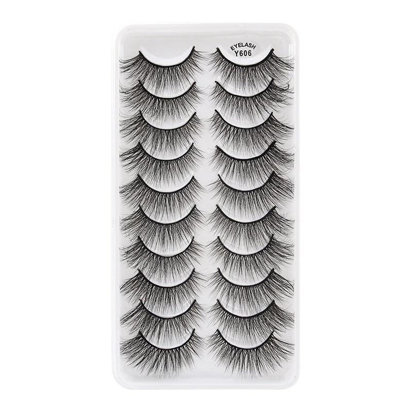 Cílios Postiços 3D Volume 10 Pares Falsos Pretos Adesivos