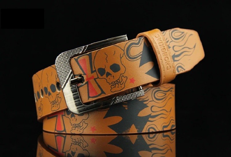 Cinto de pele com caveira