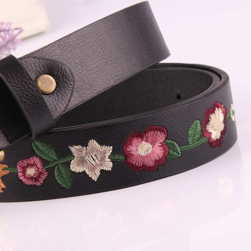 Cinto de pele feminino com flores