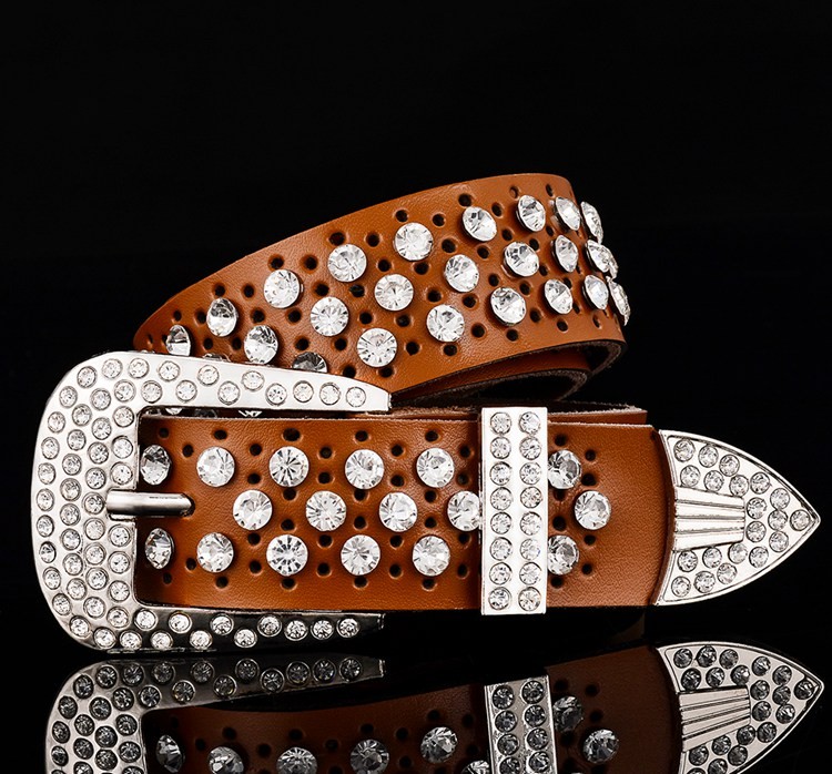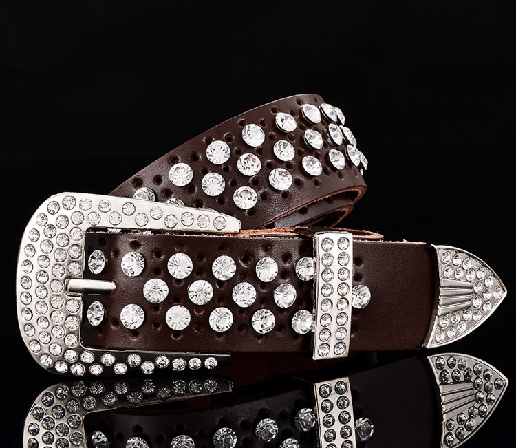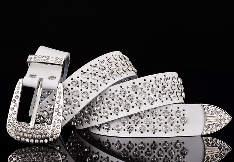 Cinto de pele moderno com pedras luxuosas enriquece o guarda-roupa de qualquer mulher.