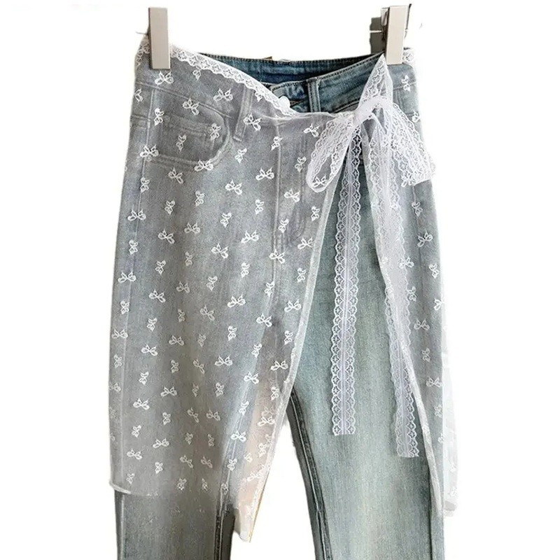 Cinto leve de renda com delicado padrão de borboletas, ideal como acessório em camadas sobre calças. Elegante e confortável para o estilo do dia a dia. Descrição completa