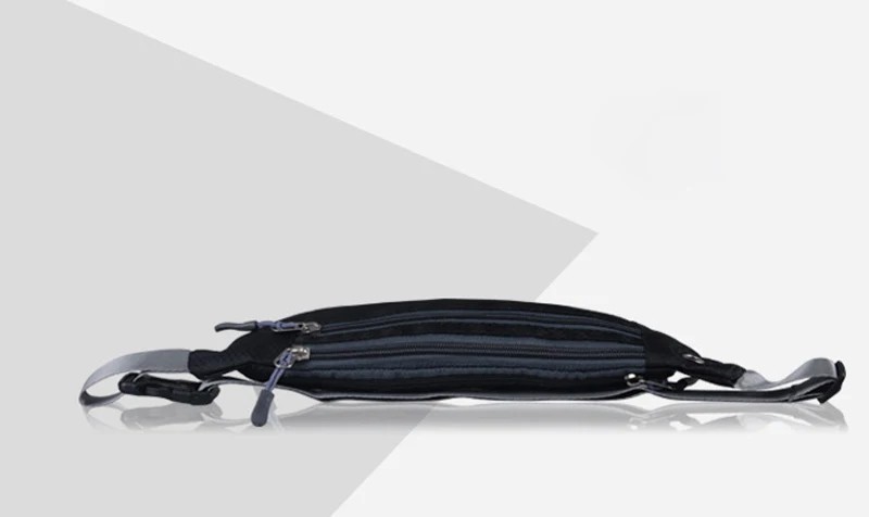 Cintura de corrida desportiva preta em oxford impermeável 33x11 cm com alça ajustável e dois bolsos com fecho