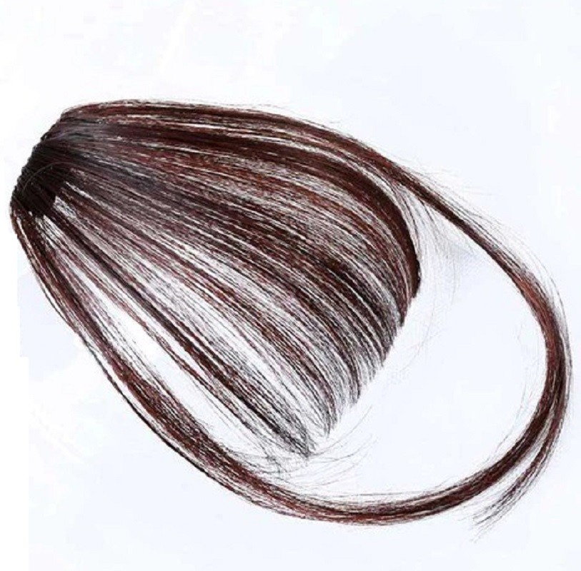 Clip in franja fabricada em fibras sintéticas de alta qualidade. Aparência natural e agradável ao toque e ao uso. Franja mais volumosa e densa em apenas alguns minutos.
