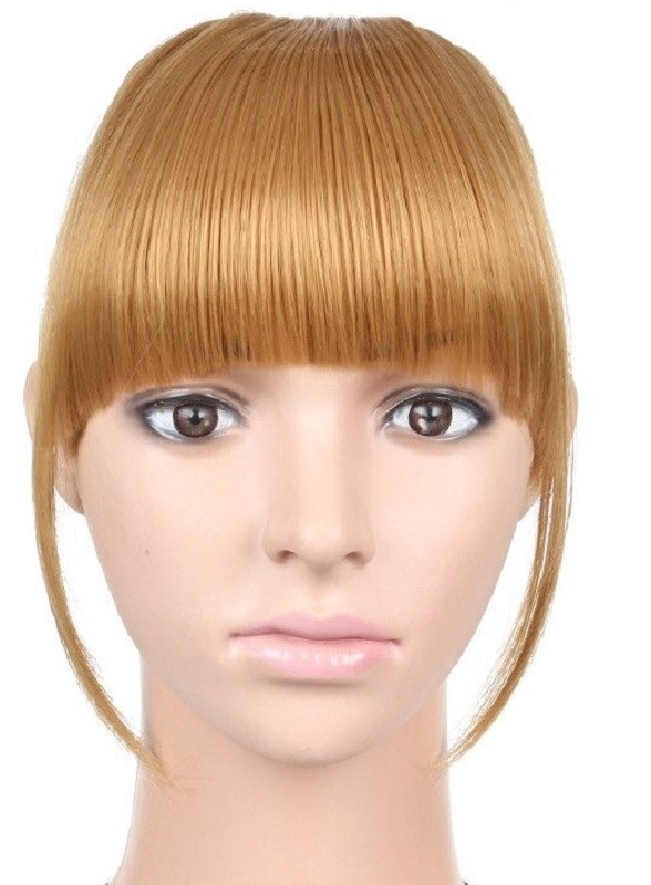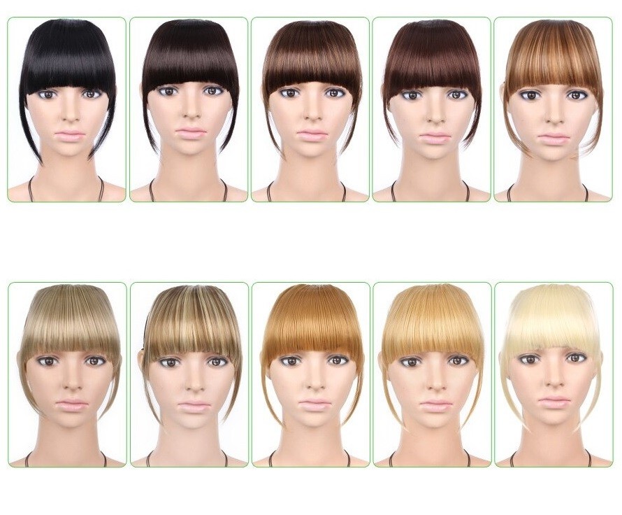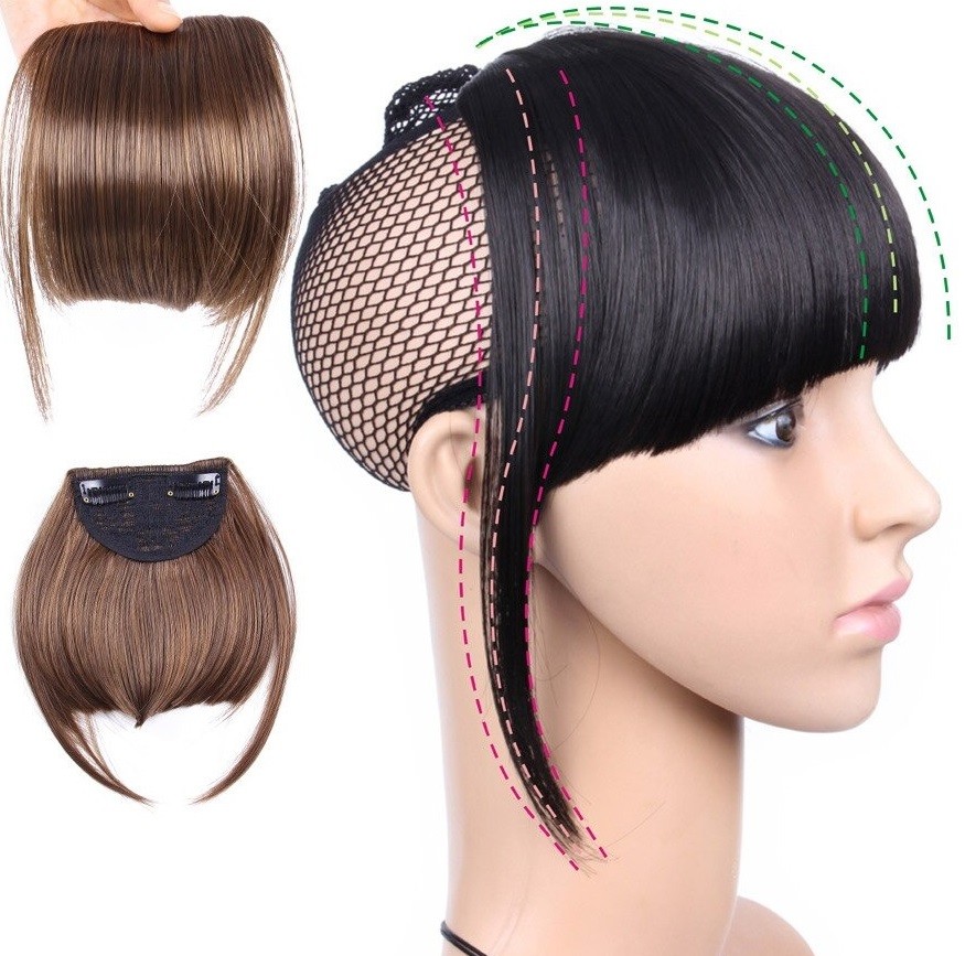 Clip in ofina reta longa cerca de 15 cm. Pode ser cortada para se ajustar ao seu rosto. Também pode ser seca com secador, encaracolada ou alisada. Alta resistência graças ao material de alta qualidade. Fixação segura com grampo.