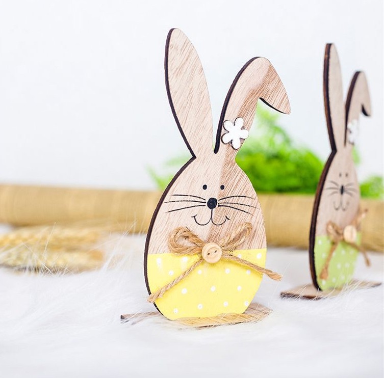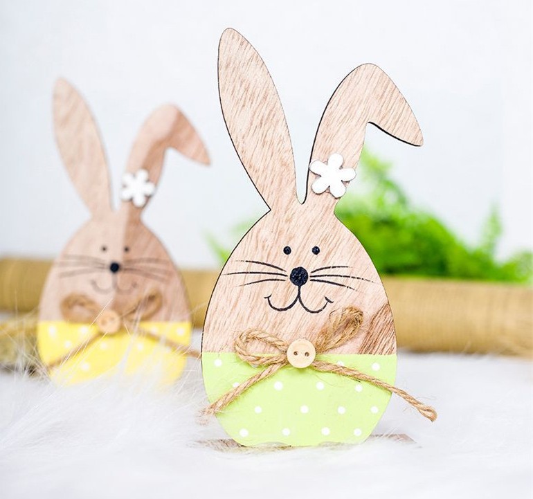 Esteja preparado para a Páscoa com todas as decorações. Temos para si estes coelhinhos de madeira, que são a decoração ideal.