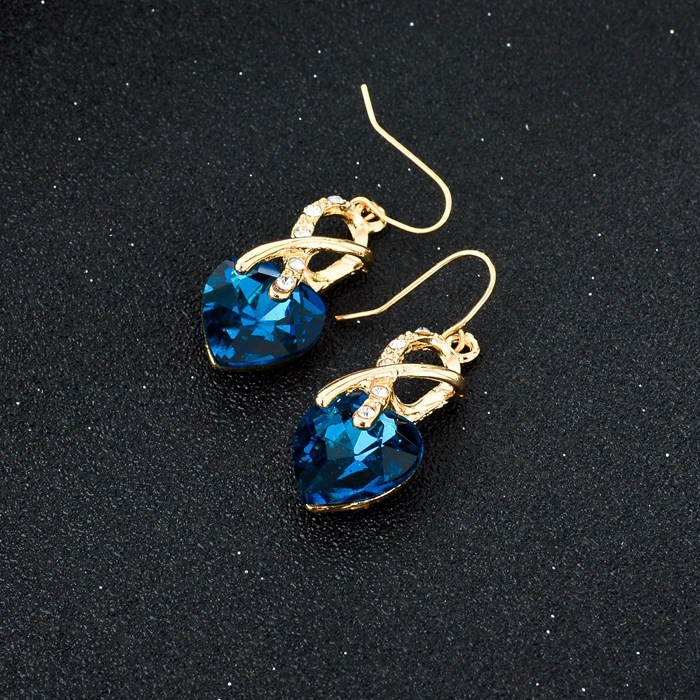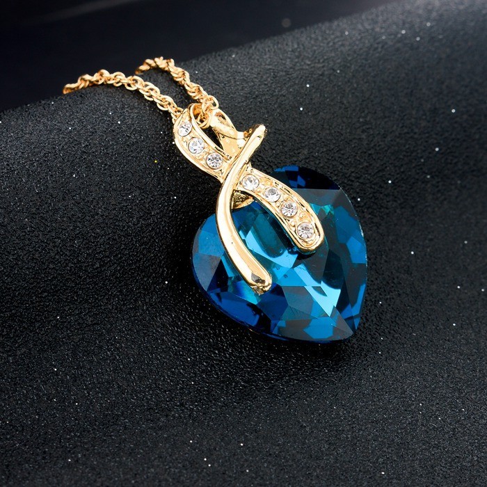Colar Dourado + Brincos CORAÇÃO DE CRISTAL - Azul