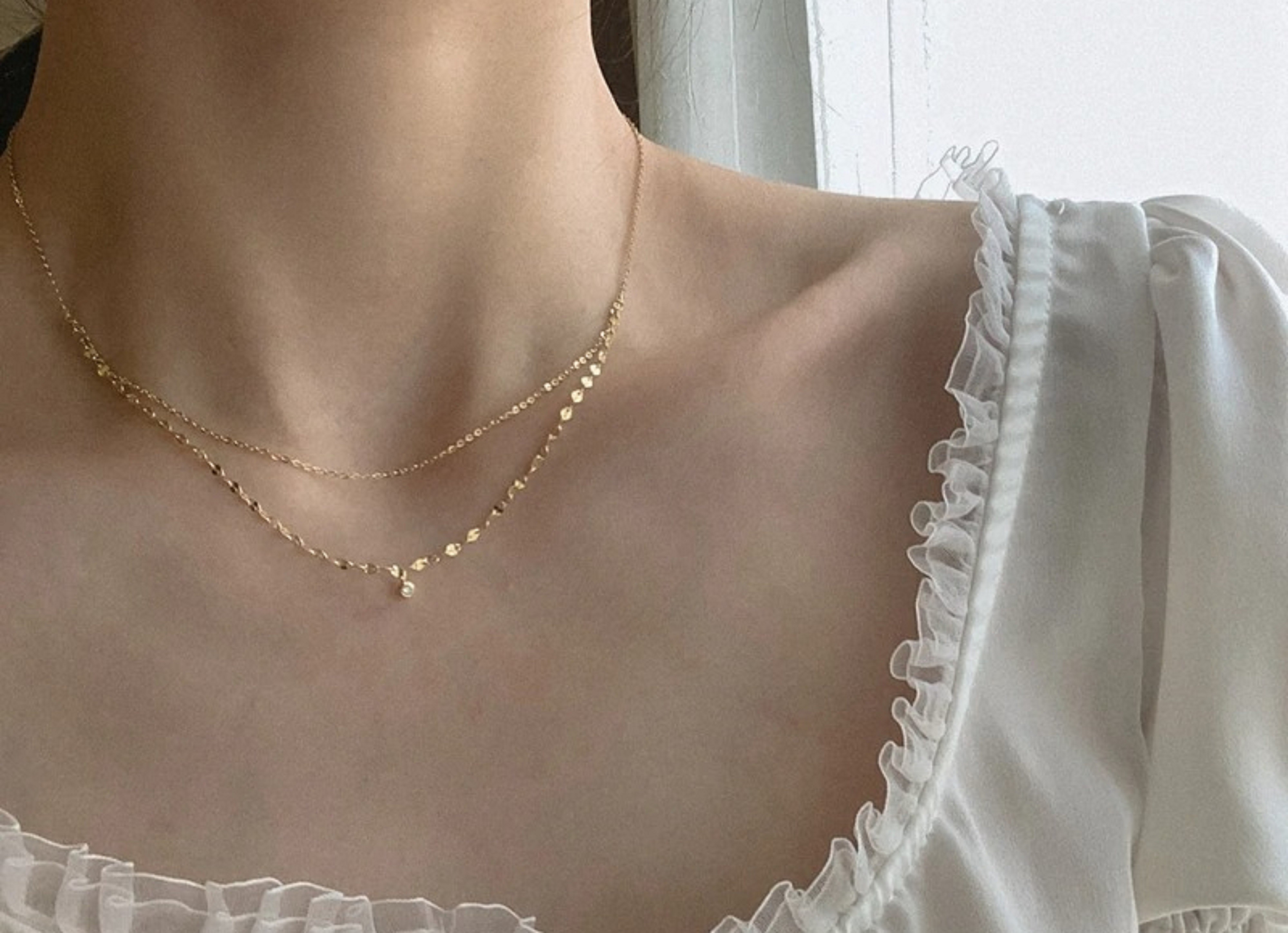 Colar duplo feminino com pedra