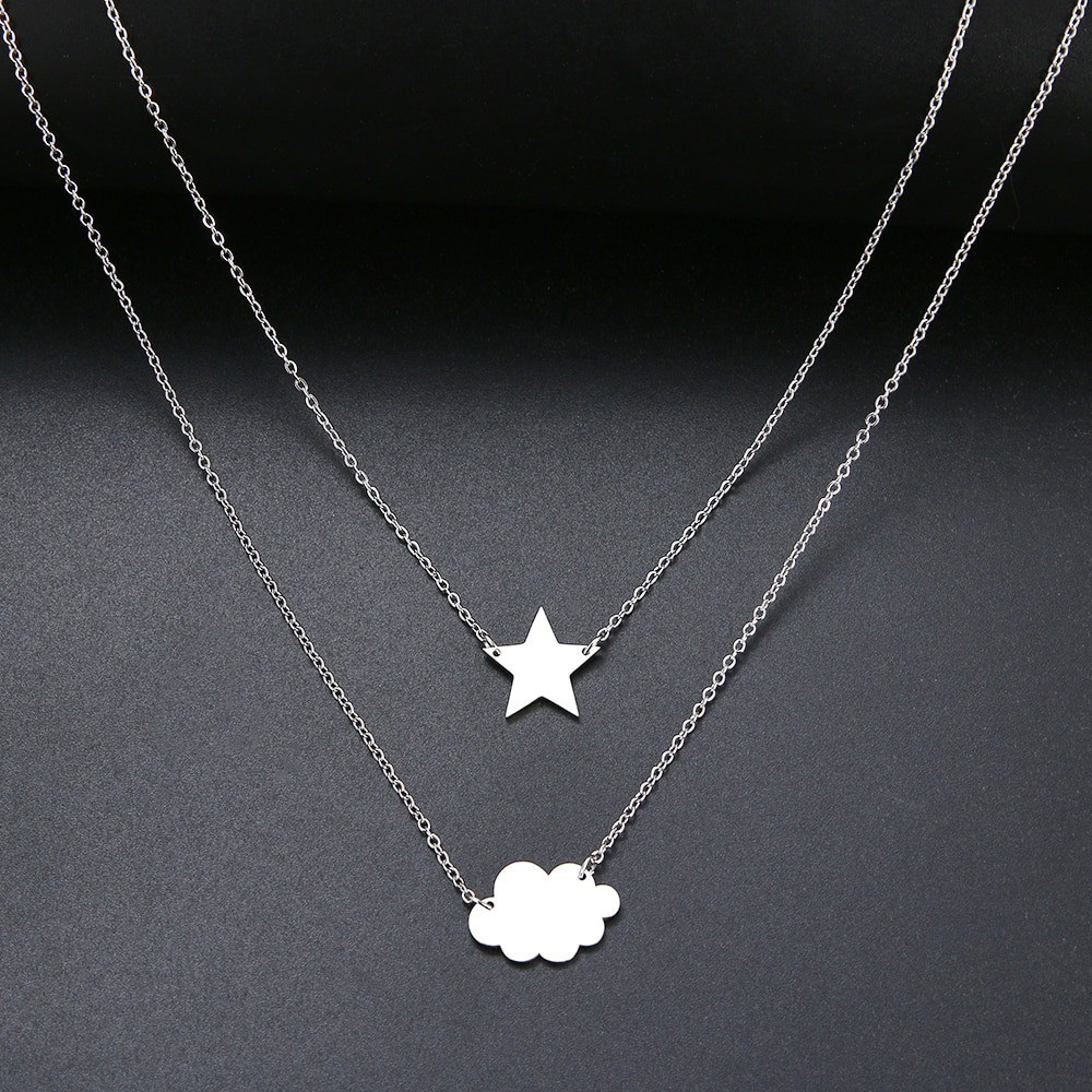 Colar duplo feminino com pendentes