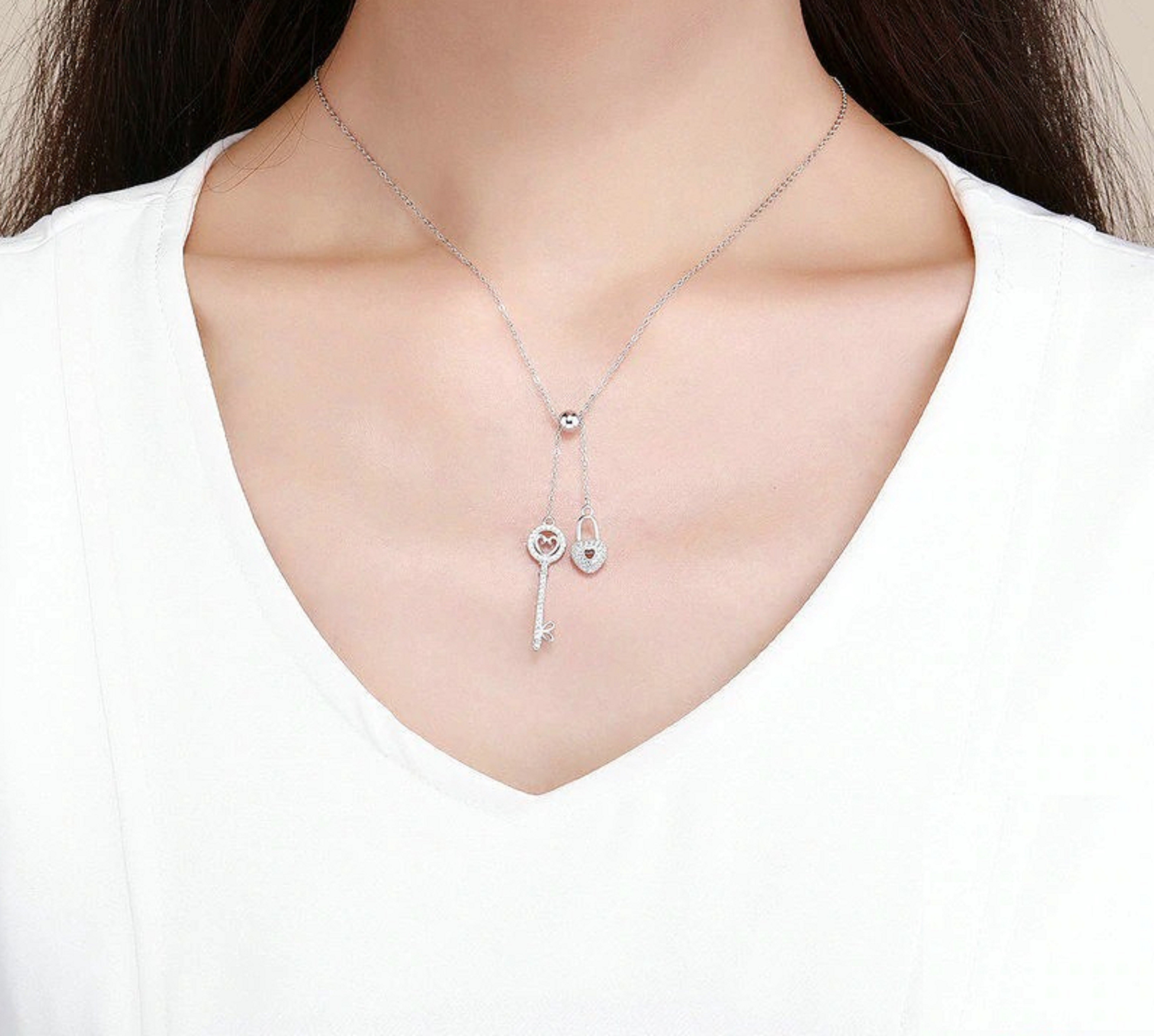 Colar feminino com chave e fechadura