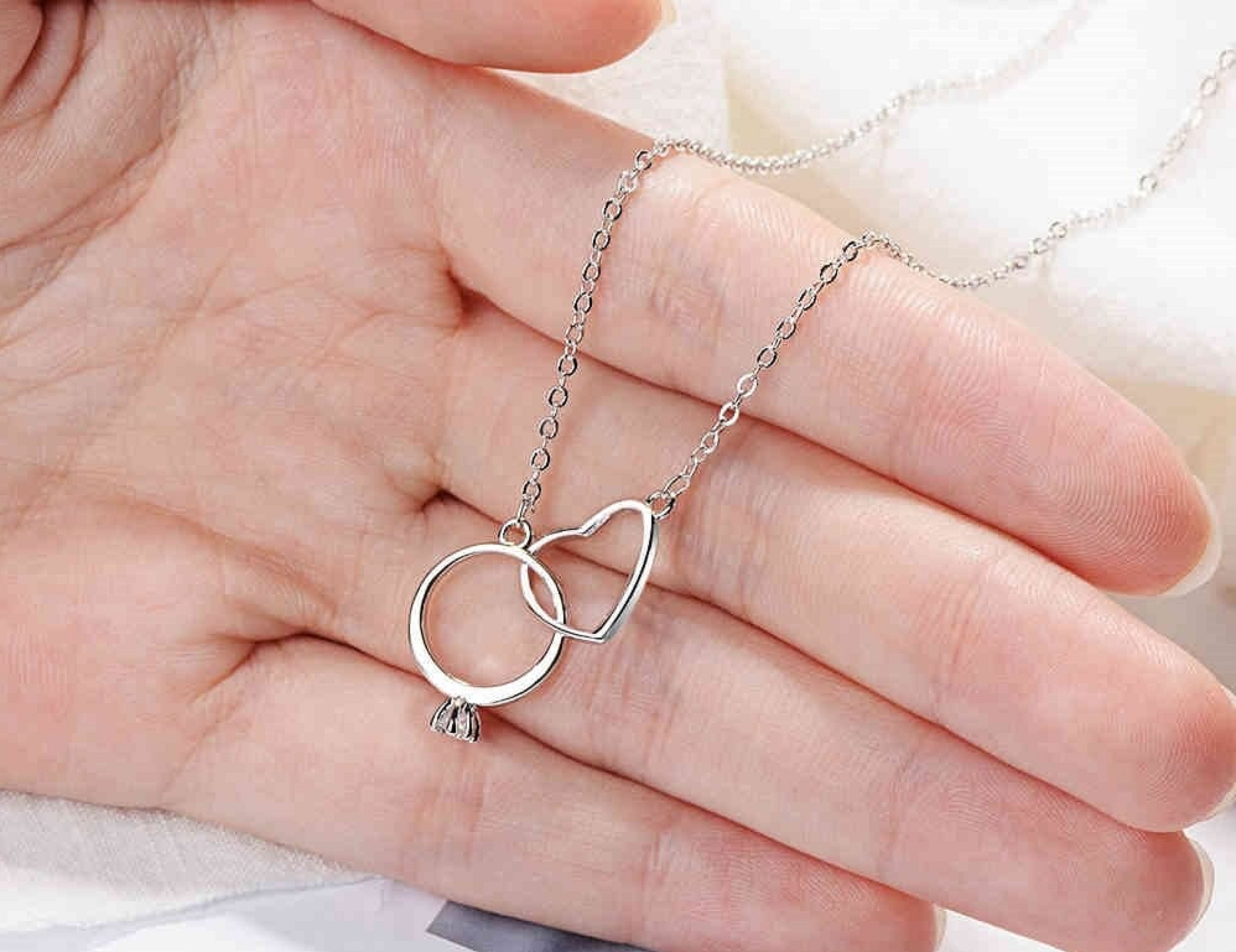 Colar feminino com coração e anel