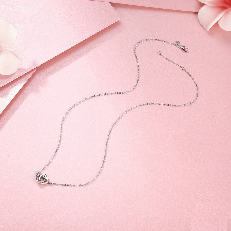 Colar feminino com corações entrelaçados