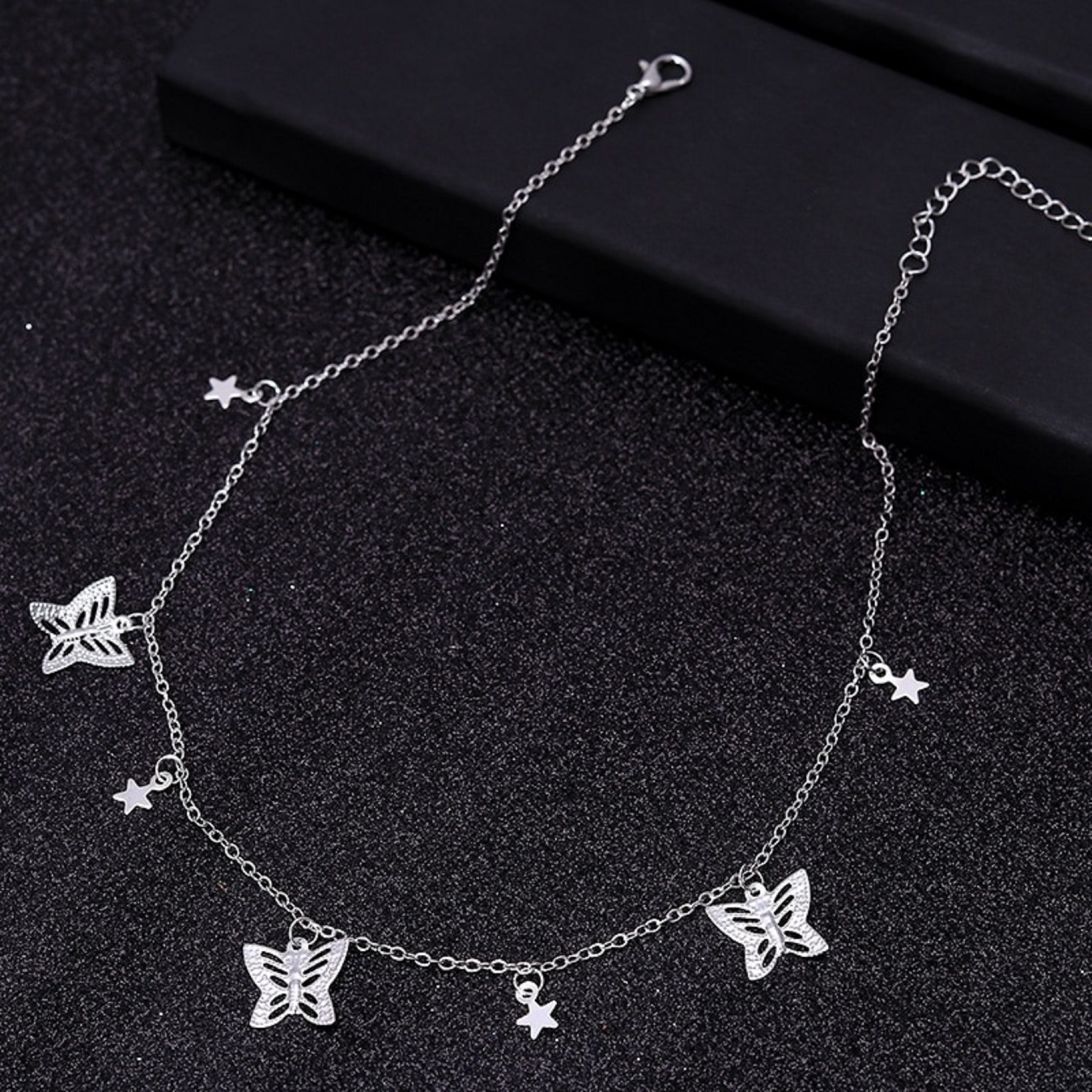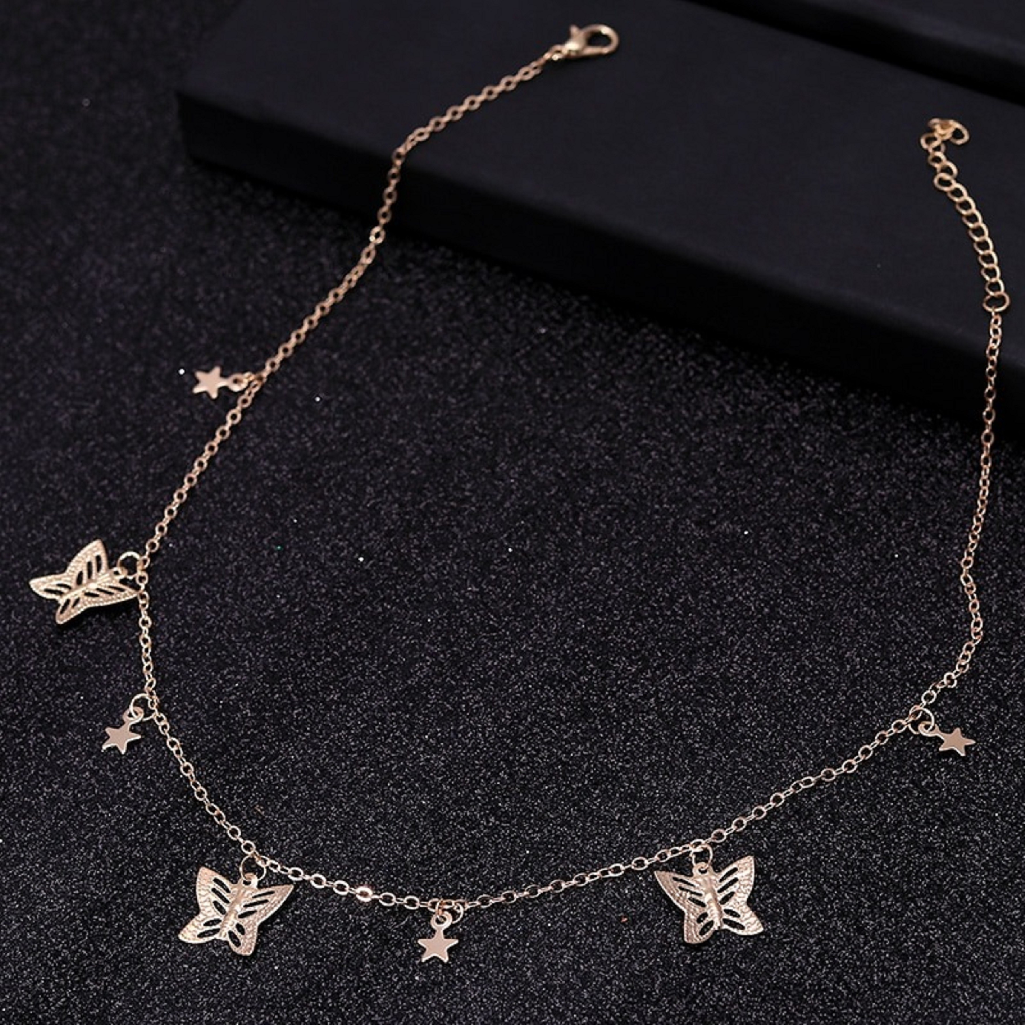 Colar feminino com estrelas e borboletas