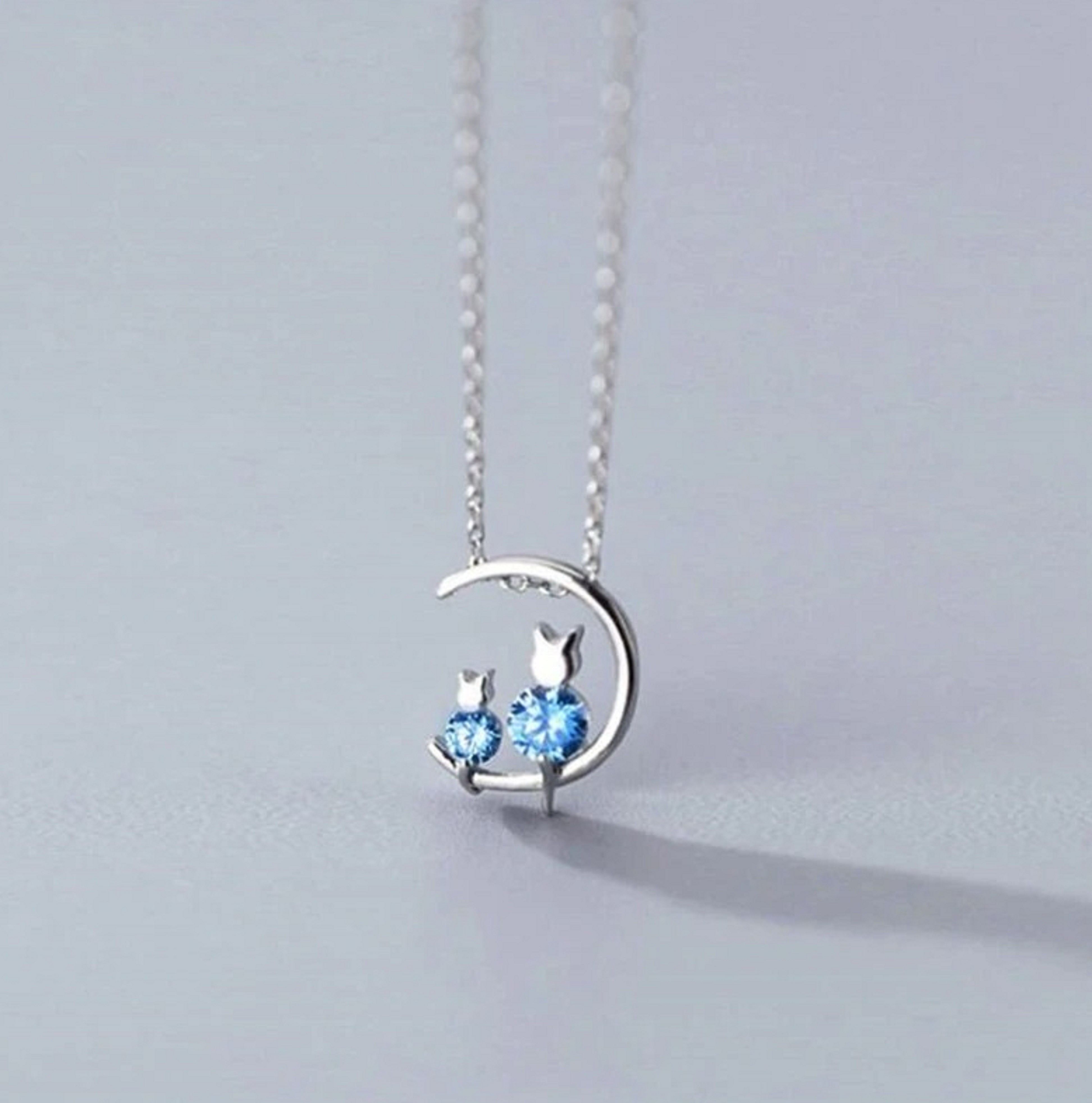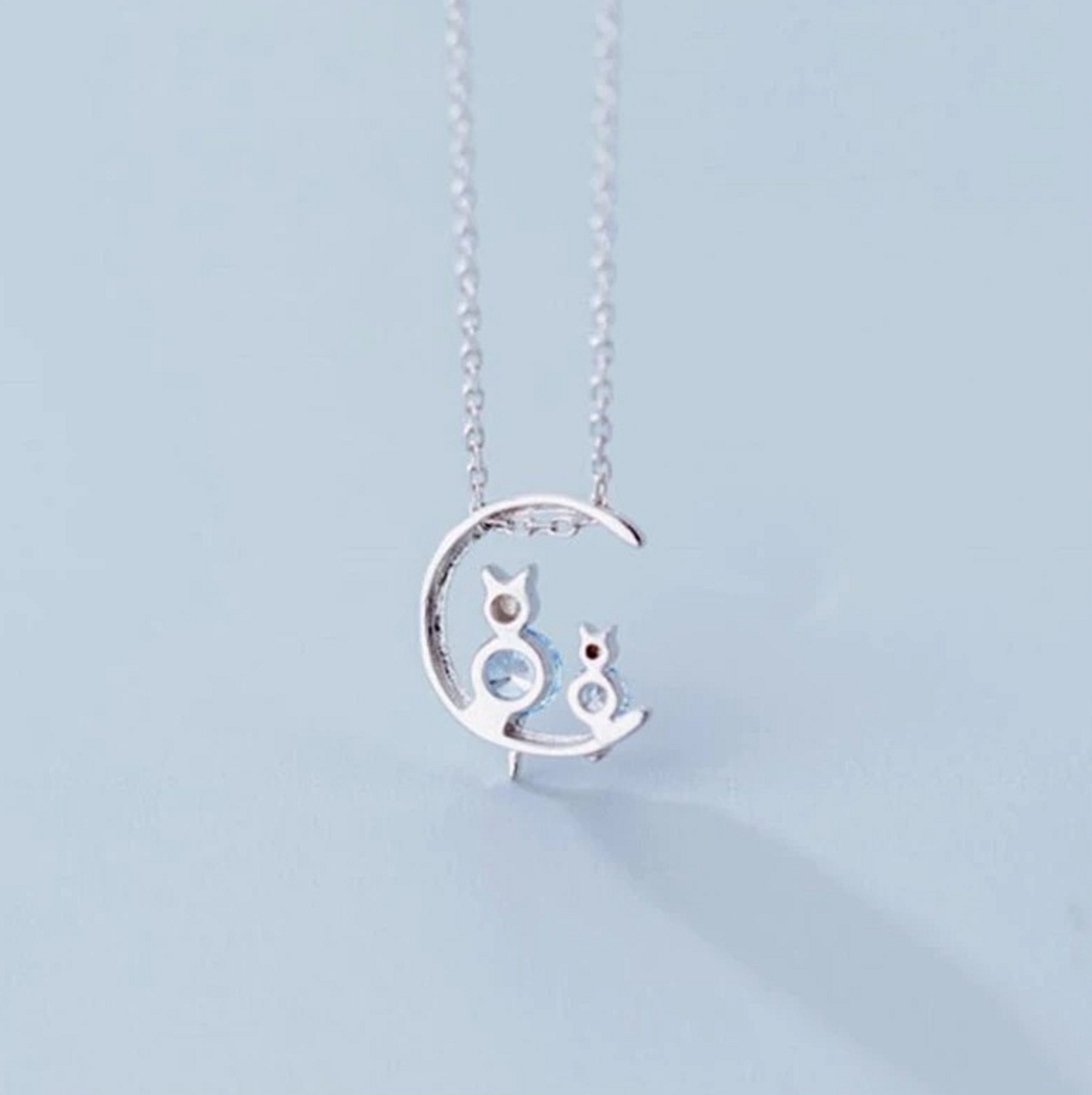 Colar feminino com gatinhos na lua