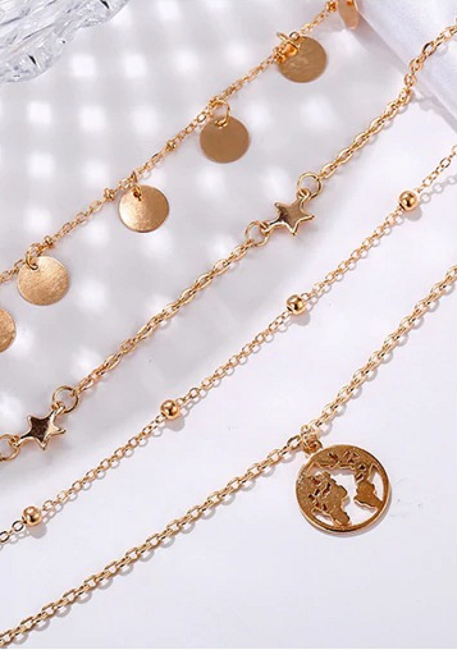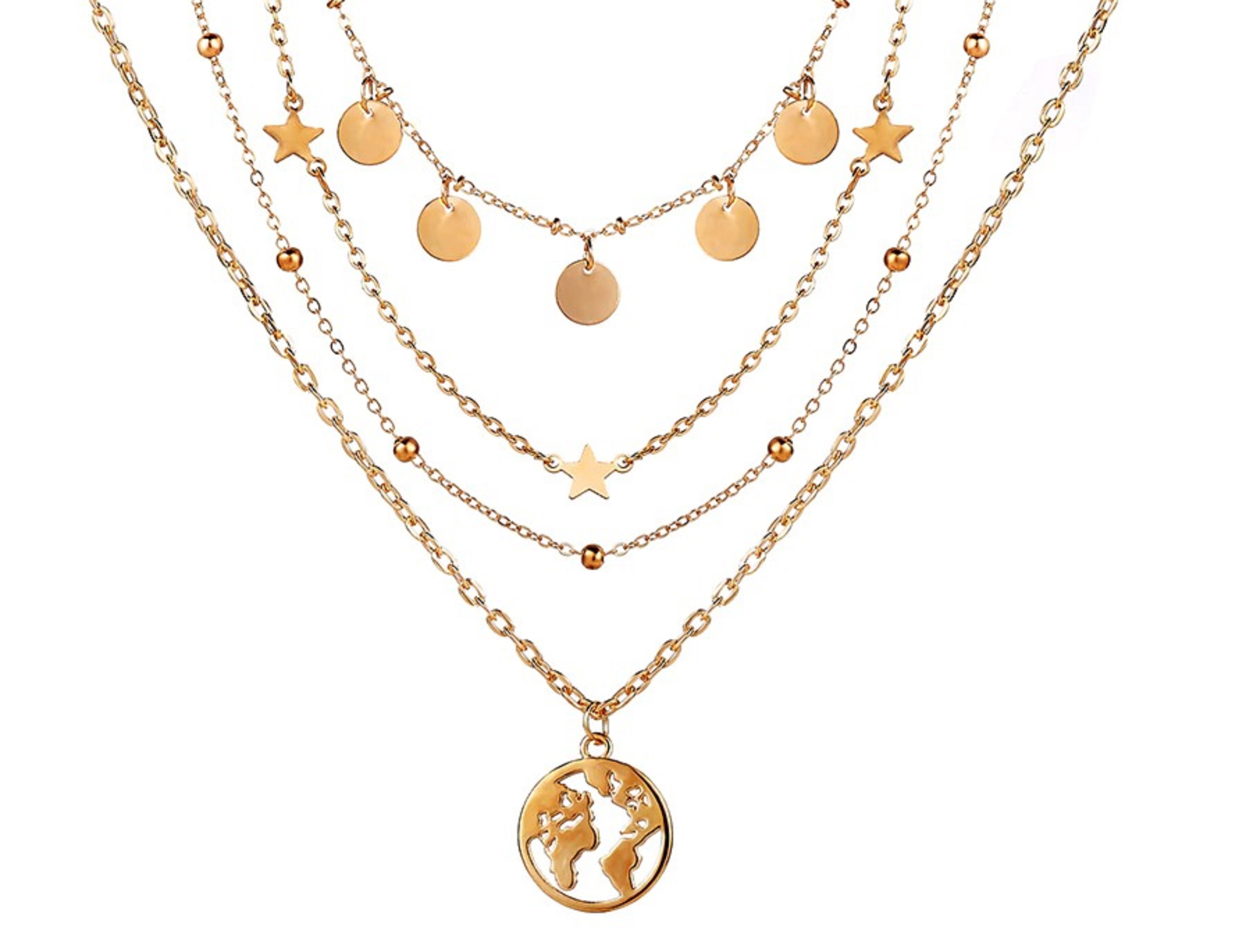 Colar feminino com globo terrestre e estrelas