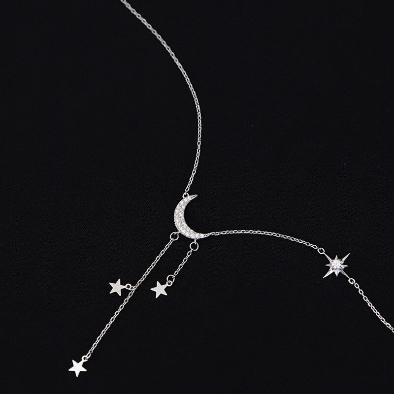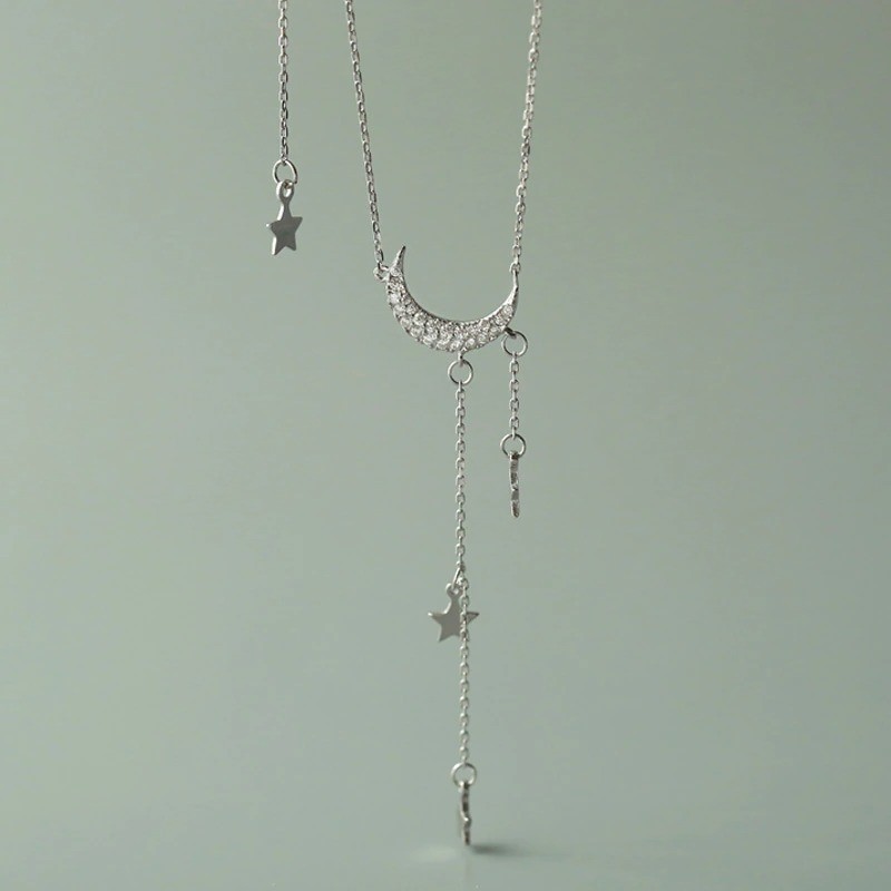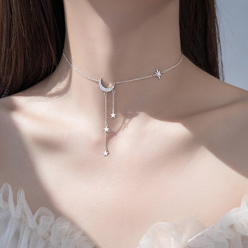 Colar feminino com lua e estrelas