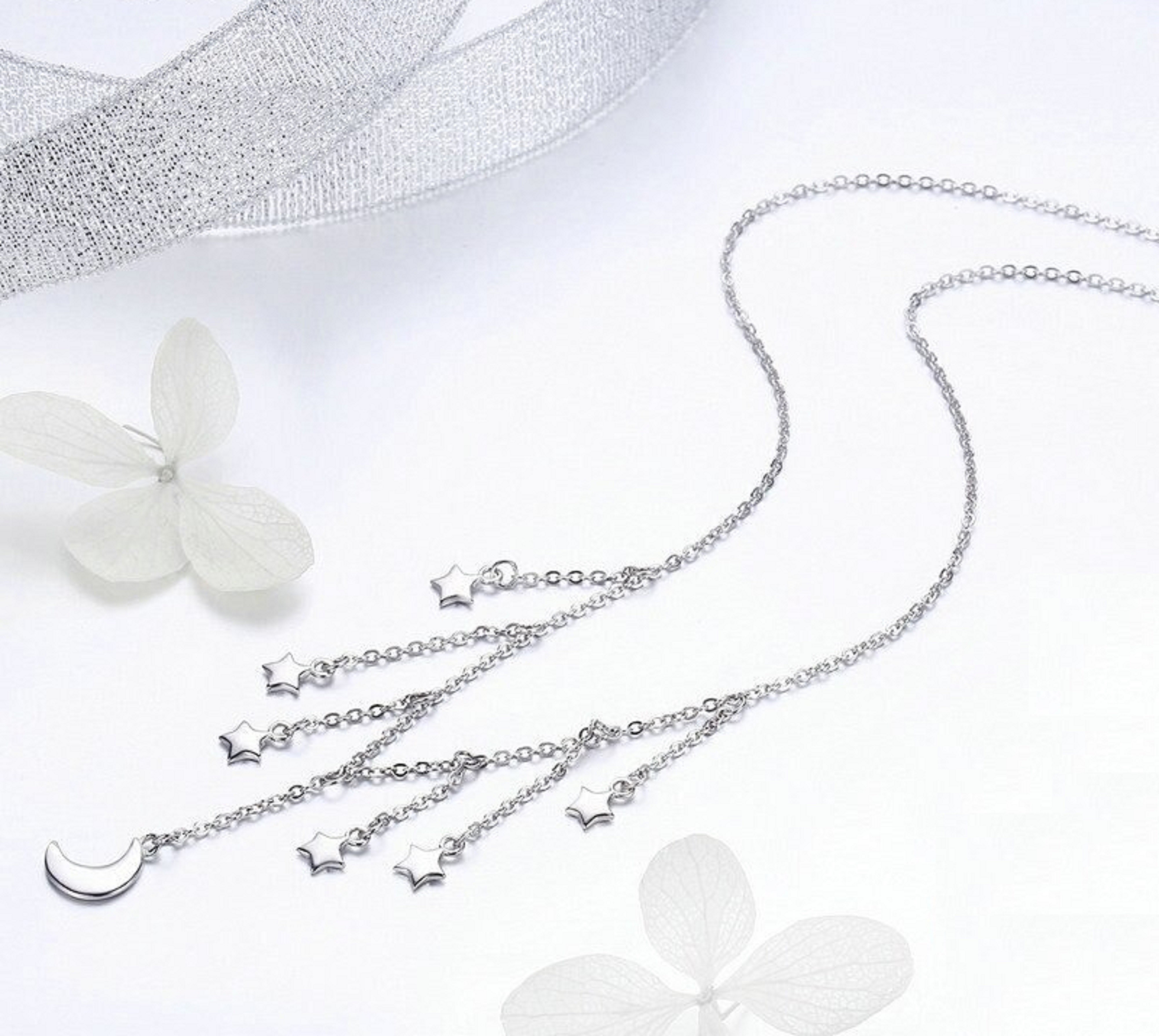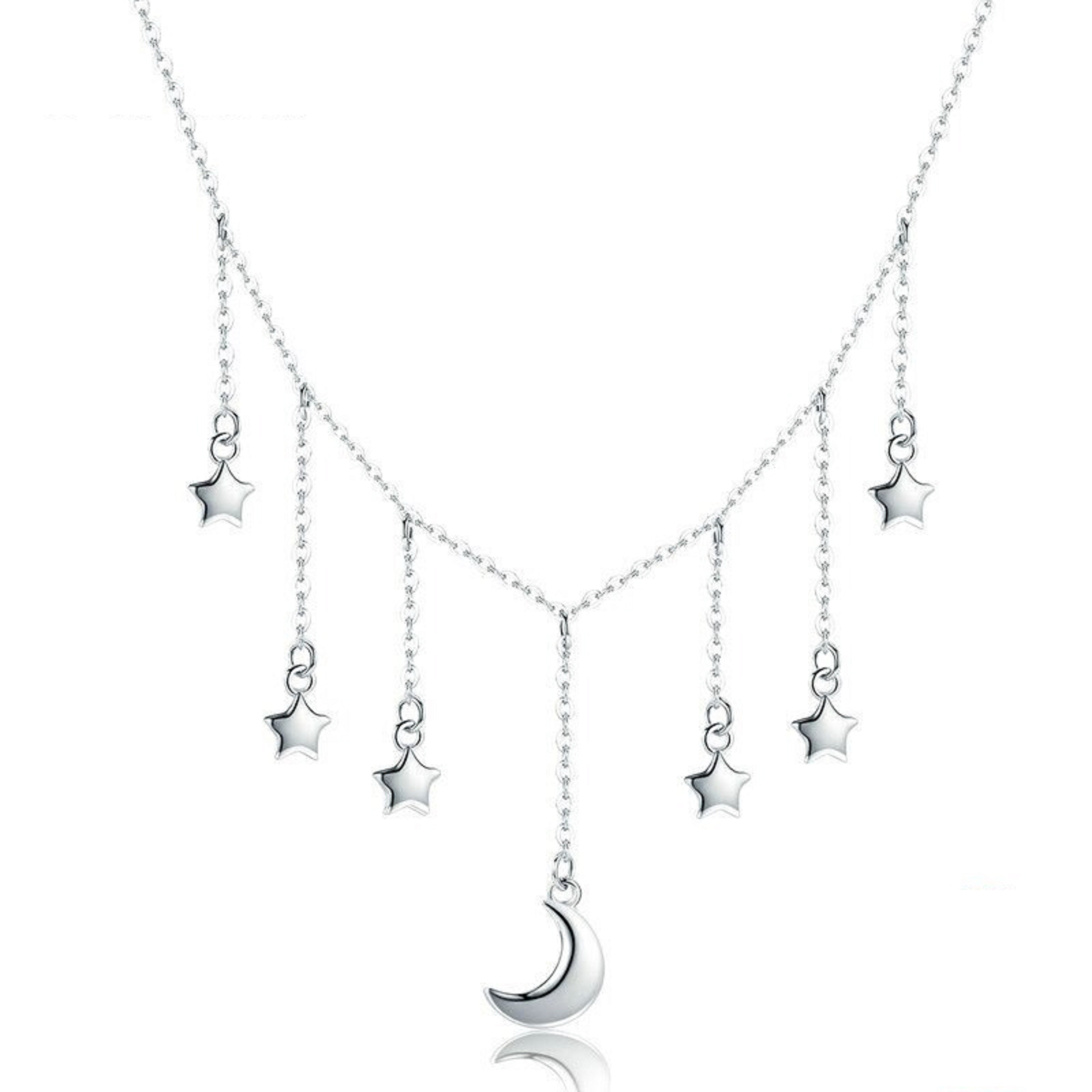 Colar feminino com meia-lua e estrelas
