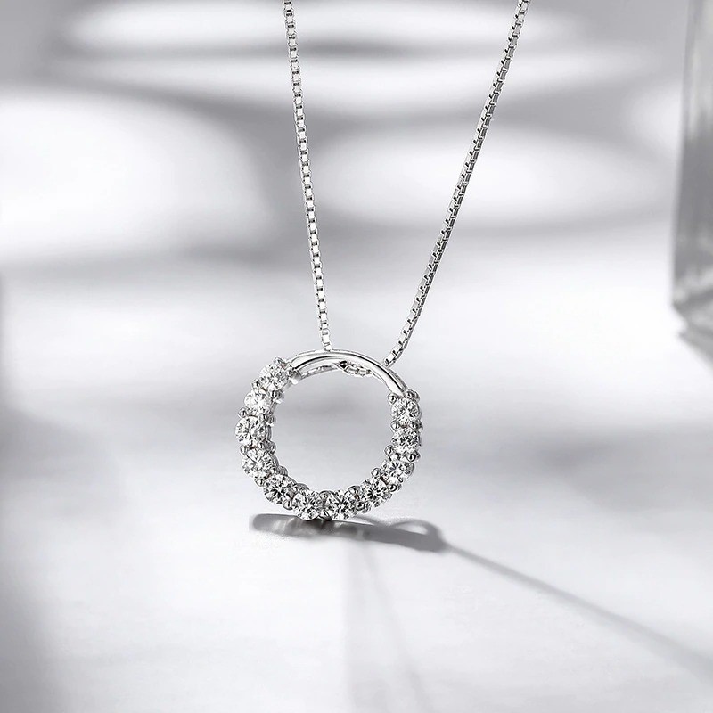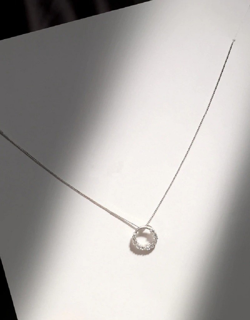 Colar feminino com pendente circular em cor prata
