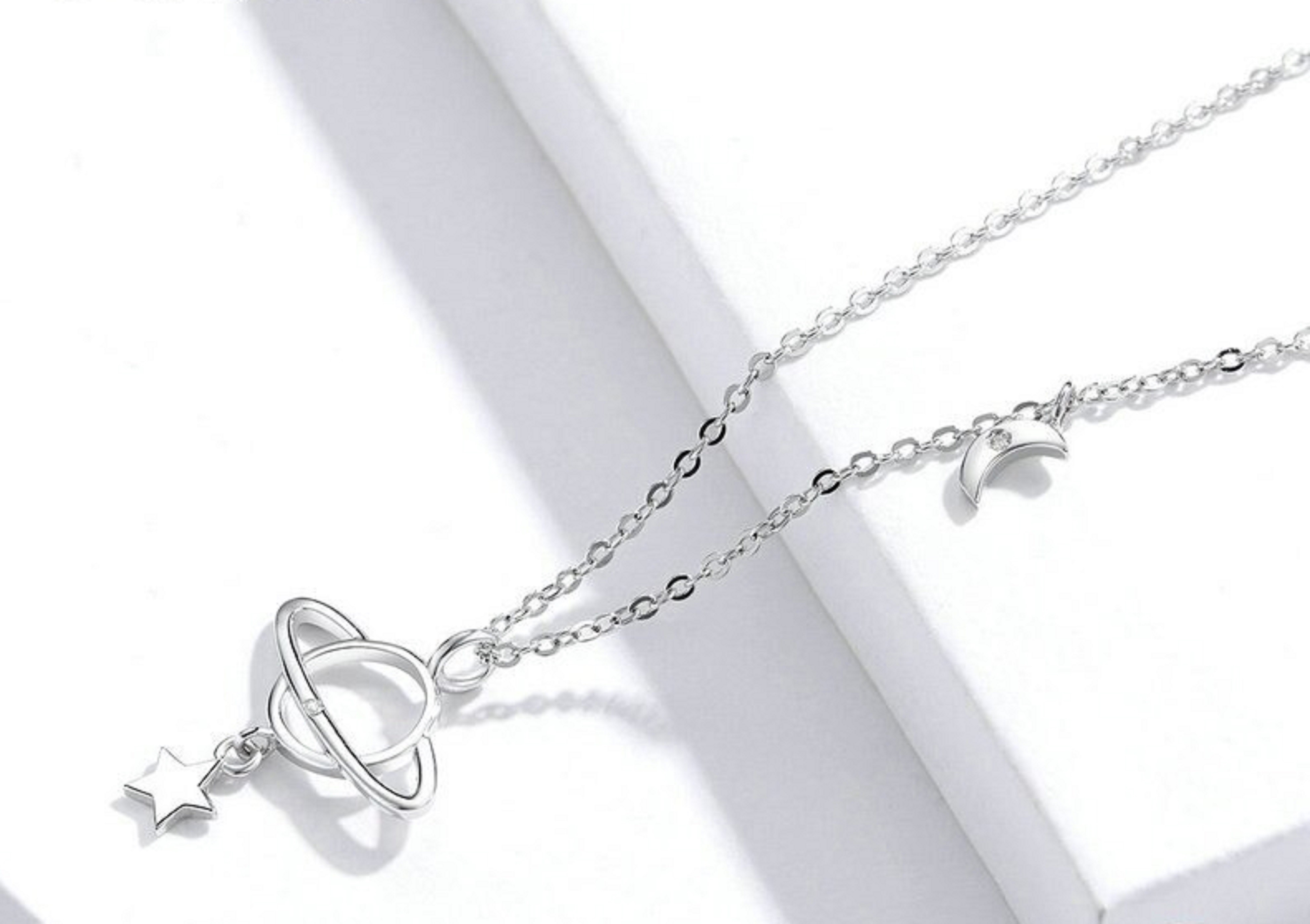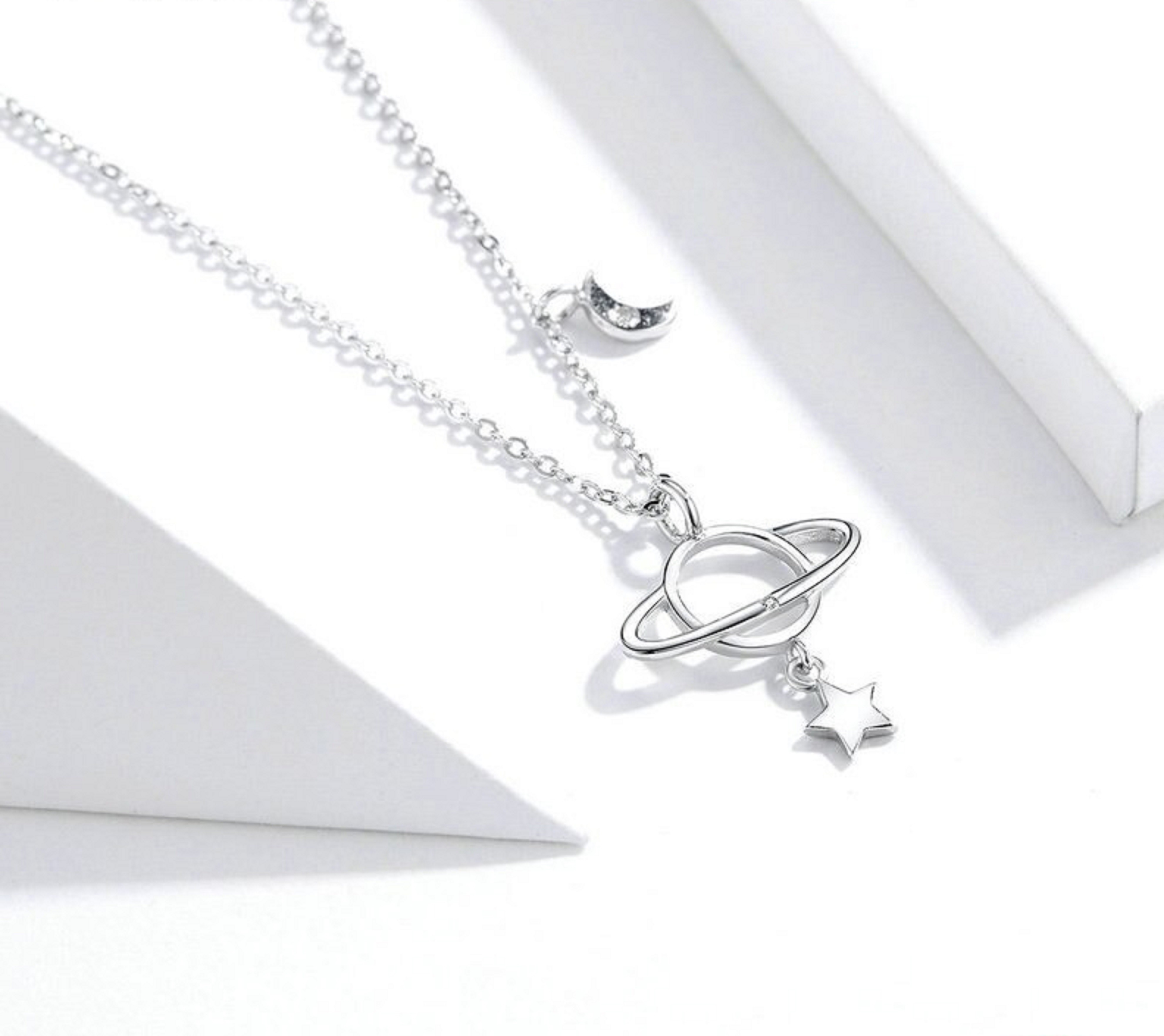 Colar feminino com planeta e lua