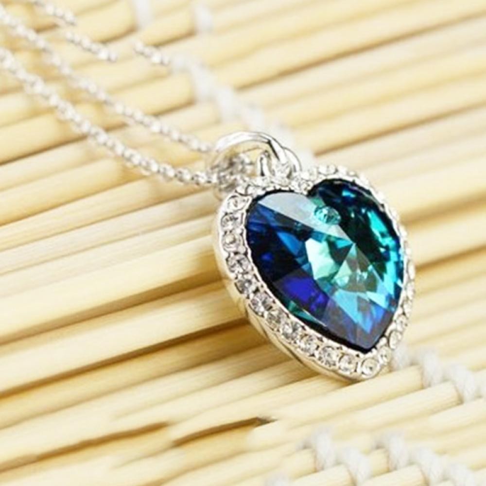 O colar feminino coração azul é um acessório apropriado para o seu outfit diário.