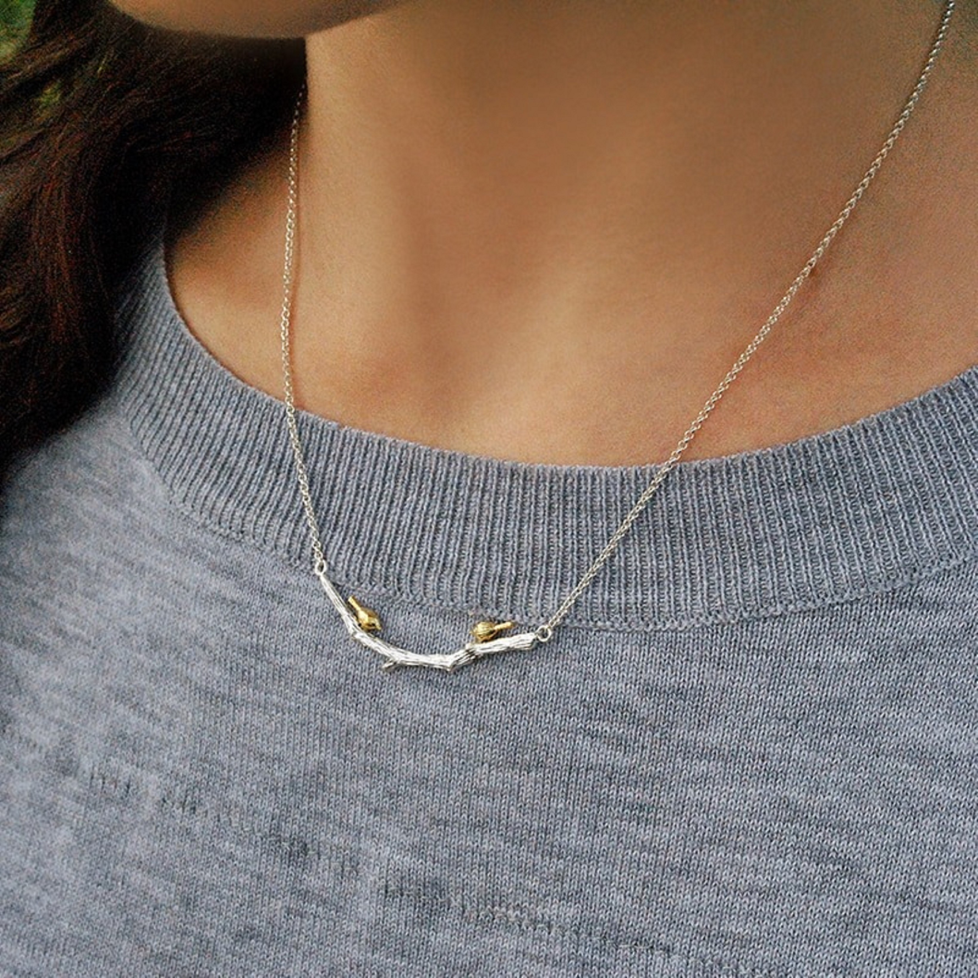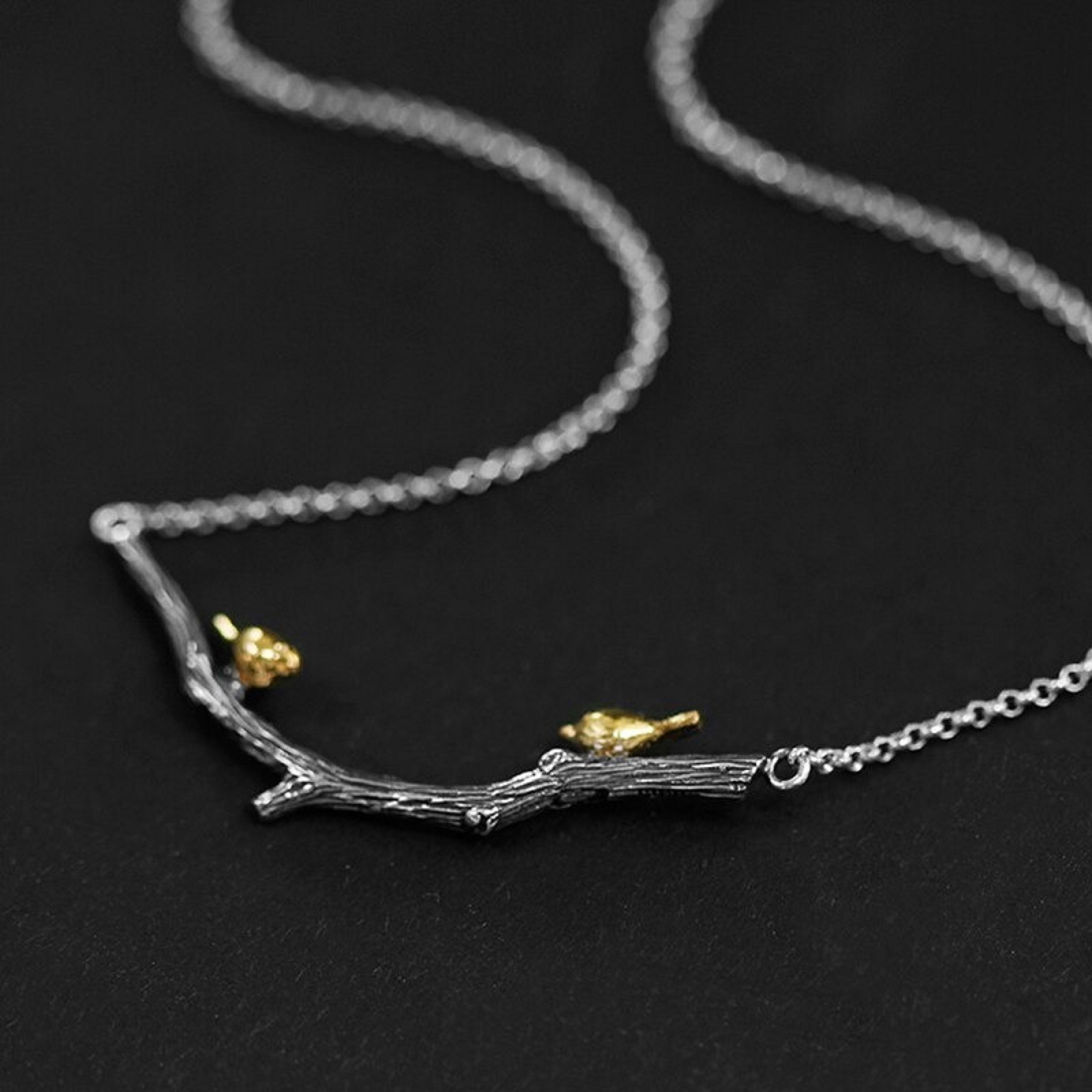 Colar feminino ramo com passarinhos