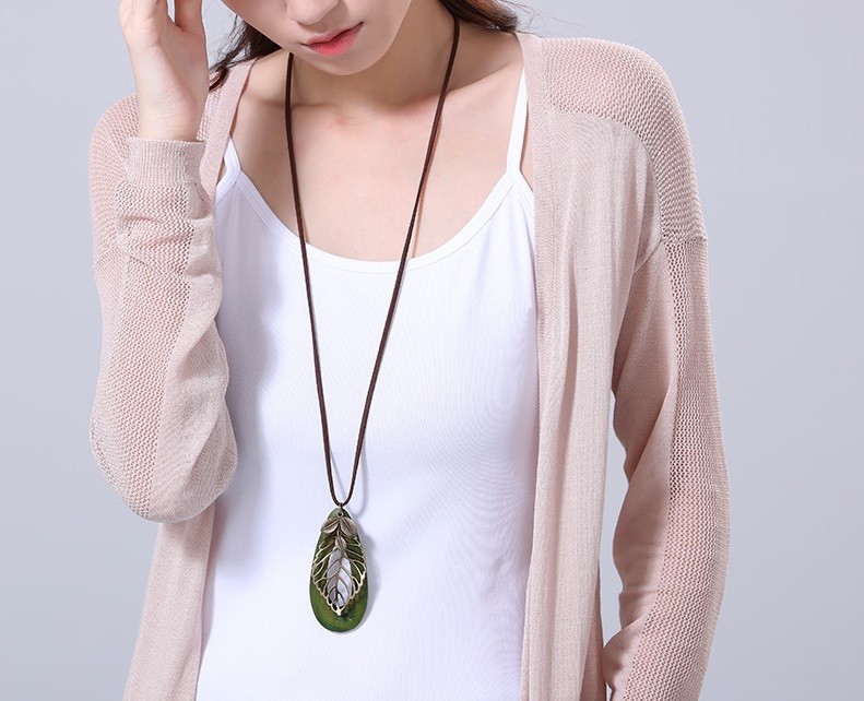 Complete o seu outfit com este acessório de moda longo em madeira.