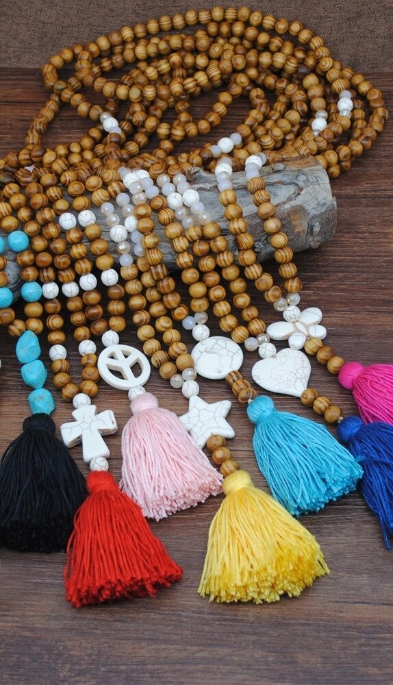 Colar longo feminino com contas
