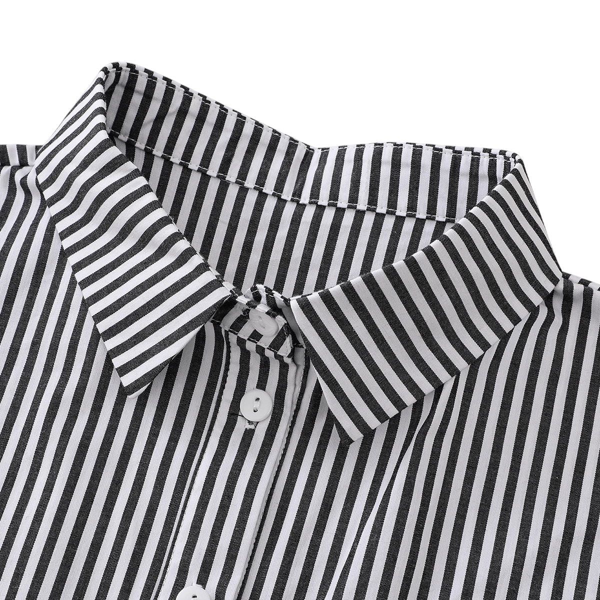 Este colarinho falso para mulheres com design riscado é o acessório ideal para qualquer mulher que queira elevar o seu visual a um novo nível. O design removível permite uma colocação e remoção simples, para que possa criar a impressão de uma camisa elegante sem a necessidade de usar toda a peça.