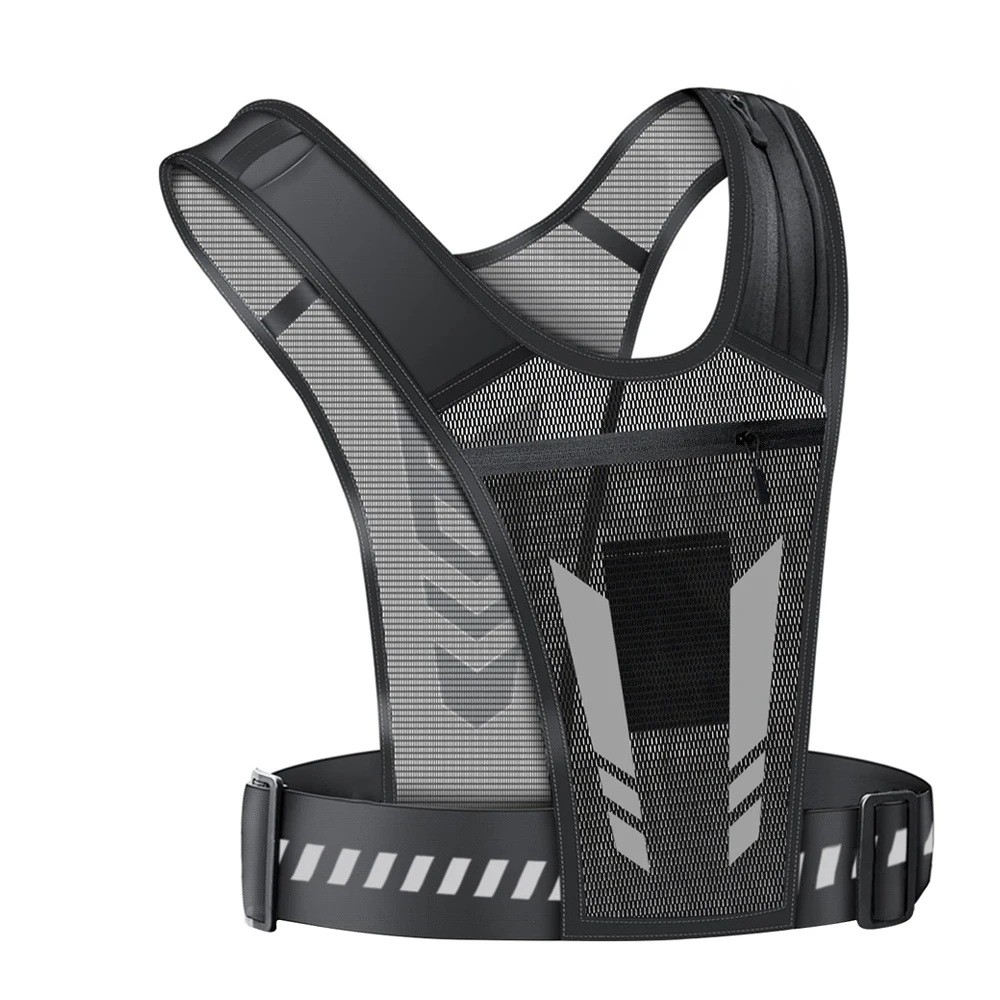 O colete de corrida é destinado a homens e mulheres que procuram uma combinação de segurança, conforto e praticidade. Graças ao design universal e ao fecho elástico, adapta-se perfeitamente a qualquer corpo. O colete é a escolha ideal para corredores, atletas e pessoas ativas que precisam ter consigo todas as coisas importantes sem restringir o movimento.