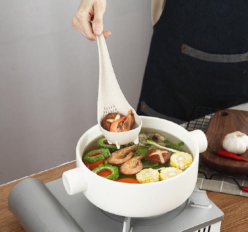 A colher é fabricada em palha processada.