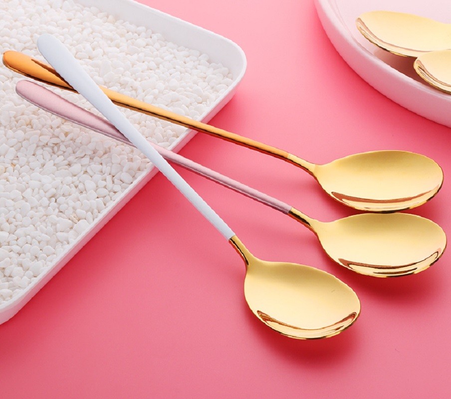Colher de aço inoxidável com pega colorida