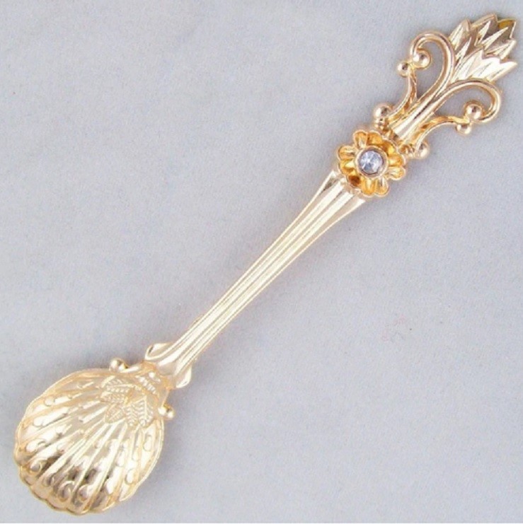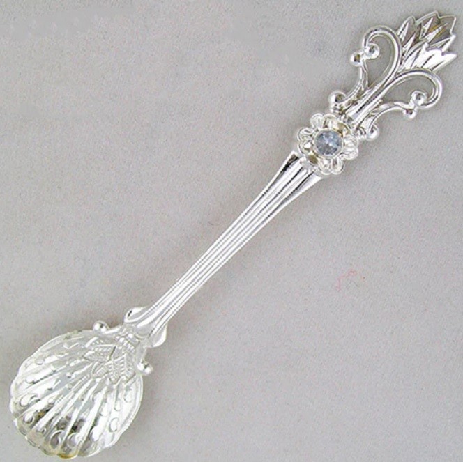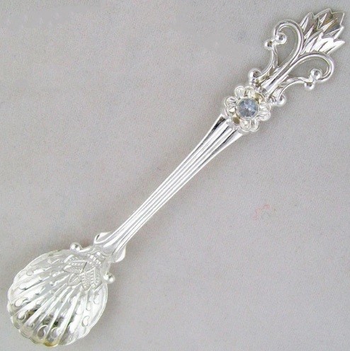 Estas colheres são feitas de uma liga e estão adornadas com uma pedra.