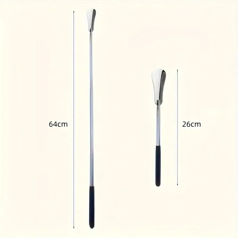 Prática colher telescópica de calçar em aço inoxidável com comprimento ajustável de 26–64 cm. Ajuda a calçar os sapatos confortavelmente sem dobrar. Descrição completa