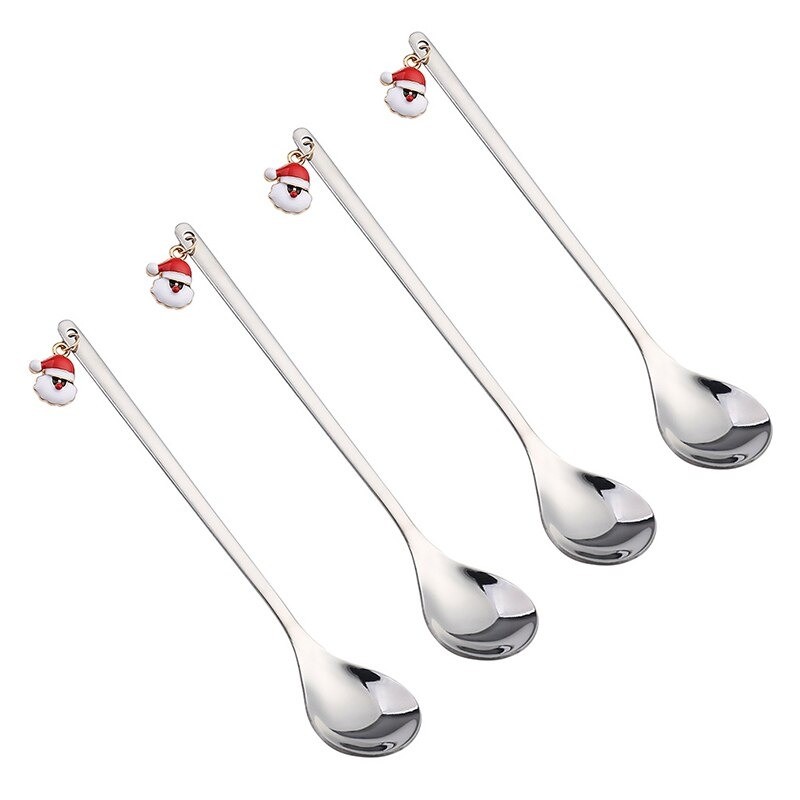 Surpreenda os seus convidados neste Natal com estas lindas colheres de Natal! Cada uma é fabricada em aço inoxidável de alta qualidade e adornada com um encantador pendente com um motivo natalício festivo. O conjunto de 4 colheres é ideal para receber e é um excelente presente para anfitriãs.