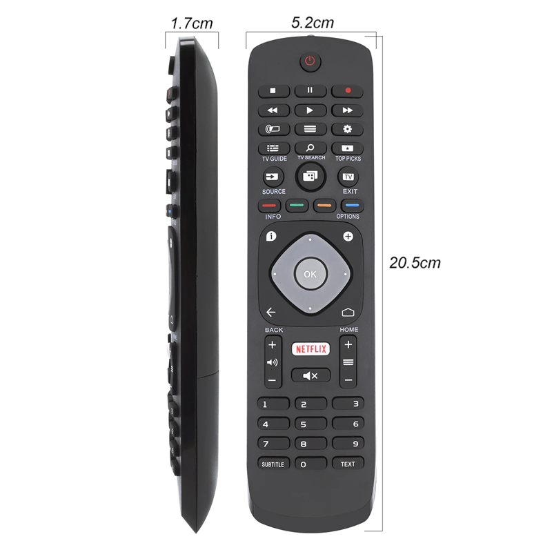 Comando remoto compatível para televisores inteligentes Philips, fácil de controlar o Netflix, alimentado por duas pilhas AAA, fácil de usar. Descrição completa