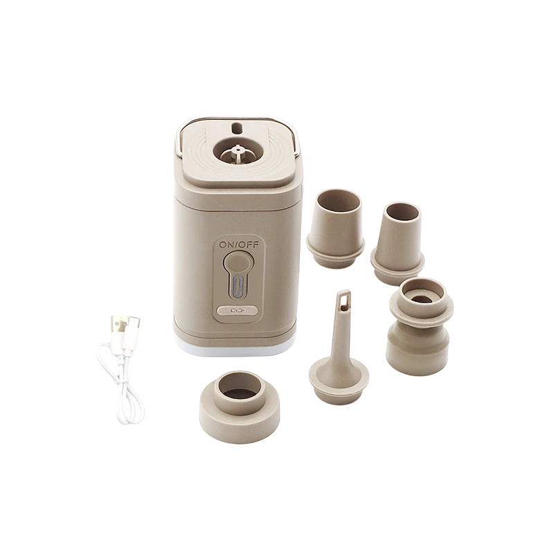 Este compressor de ar sem fios é o ajudante ideal para quem precisa de encher rapidamente e com conforto bicicletas, bolas ou outros objetos em casa ou em viagem. Graças às suas dimensões compactas de 8,35 x 9,45 cm, é fácil de transportar e não ocupa muito espaço na mochila ou na mala do carro. A prática lanterna LED com três modos garante iluminação suficiente mesmo quando utilizada à noite. O compressor é carregado através de um cabo USB, o que garante simplicidade e versatilidade de uso. Na embalagem, encontrará 5 bicos diferentes, que permitem ao aparelho encher uma ampla gama de objetos.