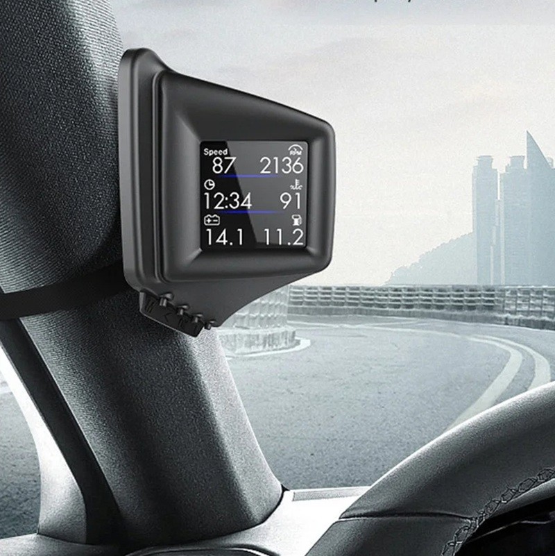 Computador de bordo multifuncional GPS HUD OBD2 2" 9,7 x 6,1 x 4,9 cm Ecrã rotativo 270° Velocímetro Rotações Consumo de Combustível Temperatura Altura Compasso Alarme